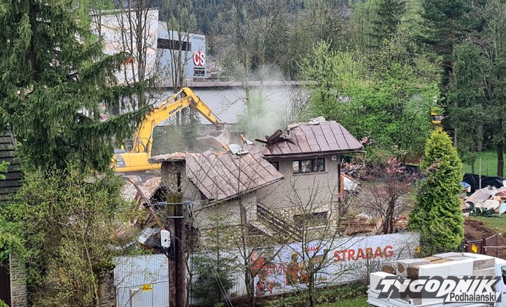 Buldożery rozbierają jedną z willi rodem z lat 70-tych. To jeden z wielu domów budowanych w obowiązującym wówczas stylu i z niepraktycznym, płaskim dachem.