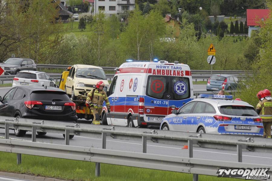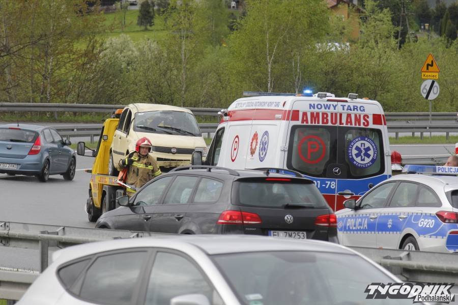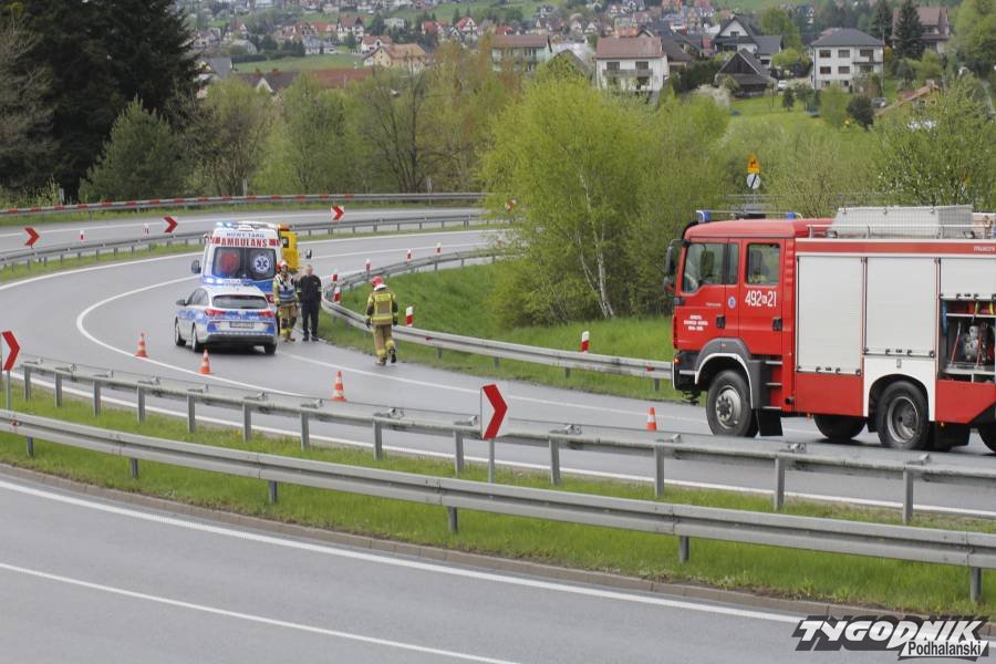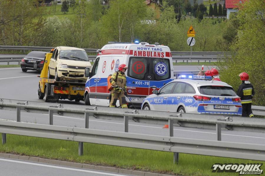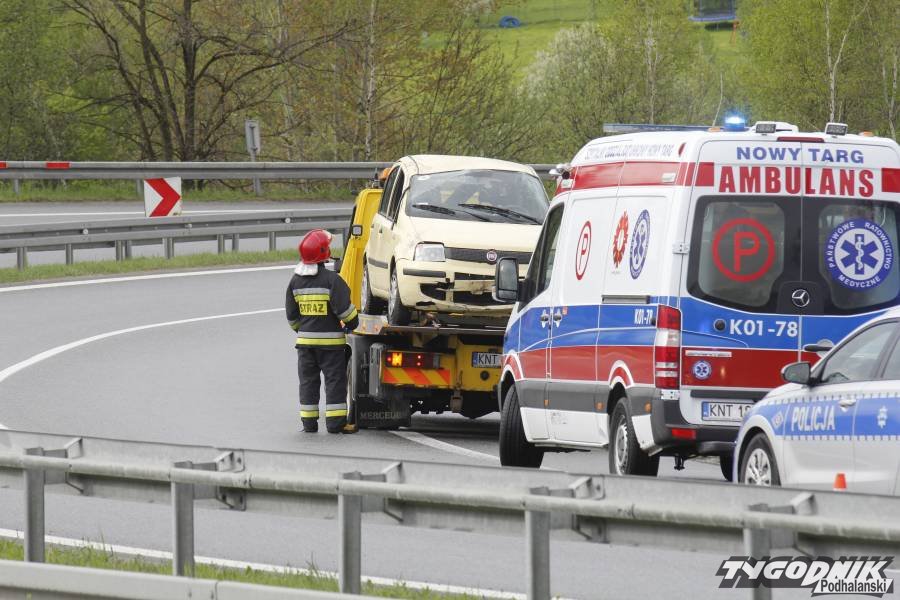 Wypadek zdarzył się przed 16. Osobowy fiat jechał w kierunku Krakowa. Na jednym z ostrych łuków drogi, poniżej "patelni" kierowca stracił panowanie nad kierownicą. Auto wypadło z drogi. Fiat zjechał do głębokiej fosy i dachował. W czasie, gdy doszło do wypadku nawierzchnia była mokra i bardzo śliska.