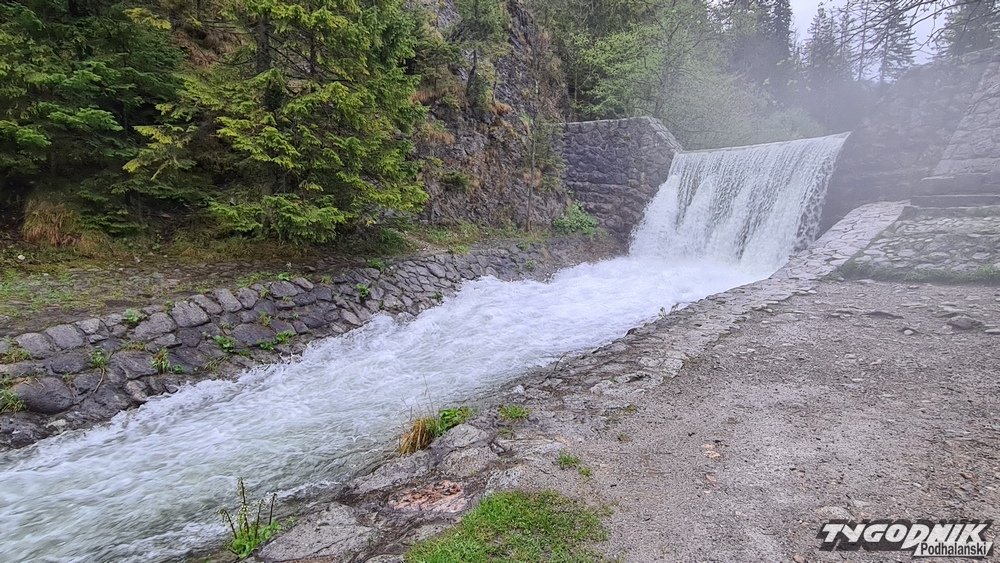 Na filmie i zdjęciach obok możecie zobaczyć jak wygląda potok Bystra poniżej tamy pod Nosalem. Cały czas pada deszcz. W punktach pomiarowych na rzekach w kilku miejscach na Podhalu utrzymuje się strefa stanów wysokich. Tak jest m. in. na Białce na Łysej Polanie, na Kirowej Wodzie w Kościelisku, na Białym Dunajcu na Harendzie.