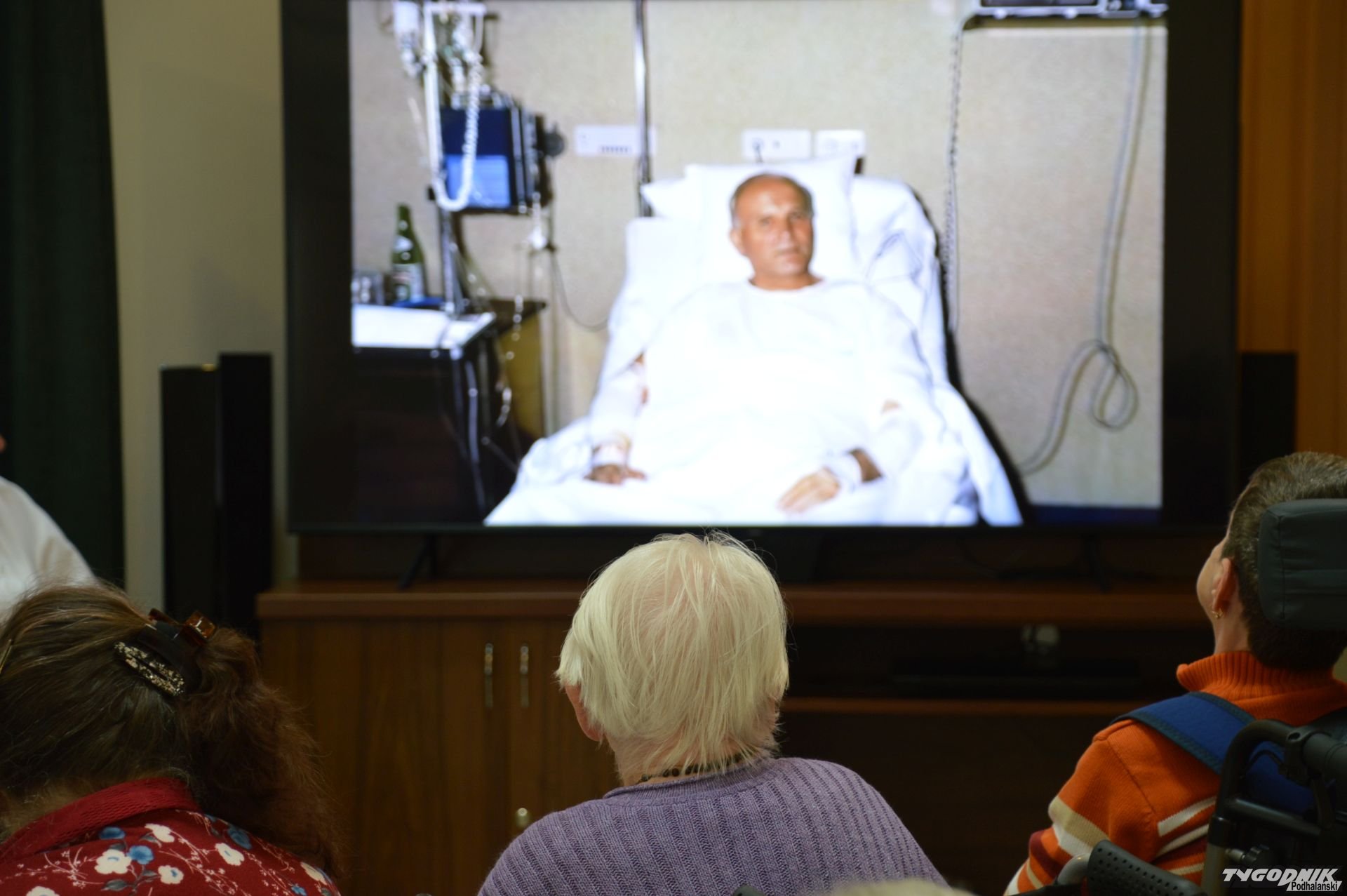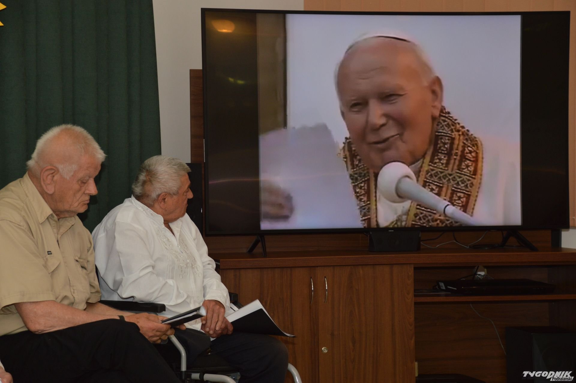 Mieszkańcy Domu Pomocy Społecznej "Smrek" w Zaskalu wspominają Jana Pawła II.
