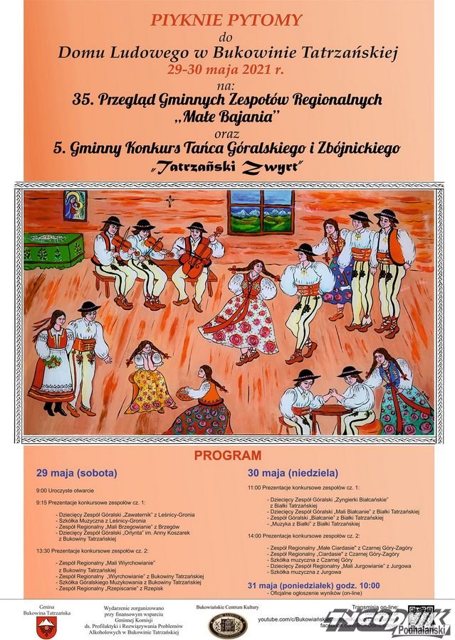 35. Przegląd Gminnych Zespołów Regionalnych "Małe Bajania" i 5. Gminny Konkurs Tańca Góralskiego i Zbójnickiego "Tatrzański Zwyrt" - w najbliższy weekend w Domu Ludowym w Bukowinie Tatrzańskiej.