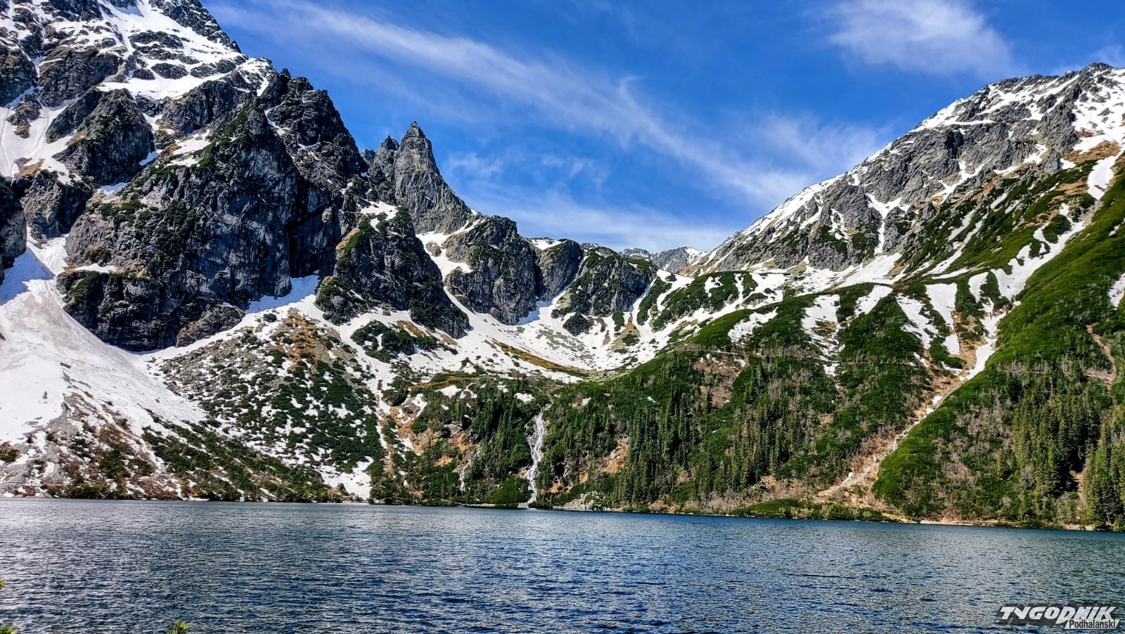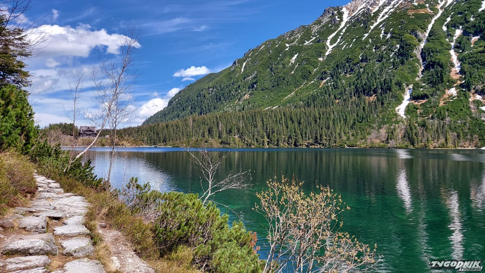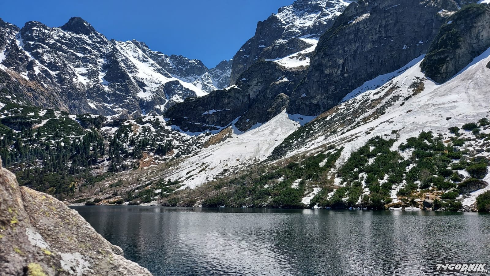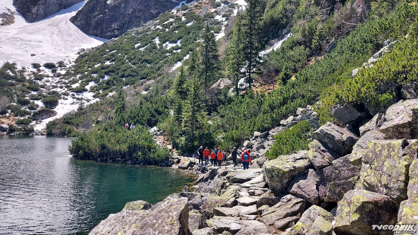 Ostatnie tygodnie nie rozpieszczają nas piękną pogodą. Nic więc dziwnego, że dziś, gdy zaświeciło słońce, kto tylko mógł wyruszył w góry. Bardzo wiele osób postanowiło dojść nad Morskie Oko. Tu wiosna zwycięża już zimę, ale wyżej - na przykład na Rysach - nadal panują zimowe warunki.