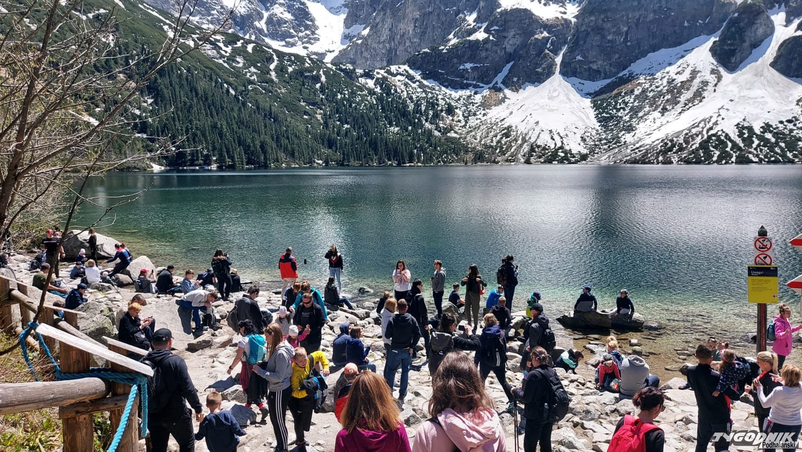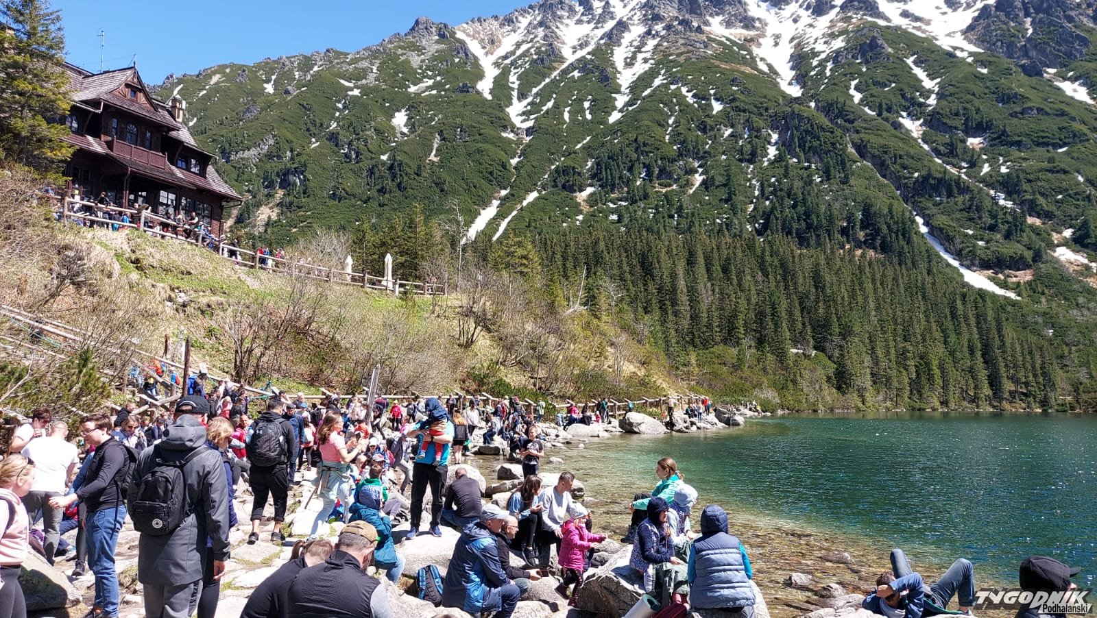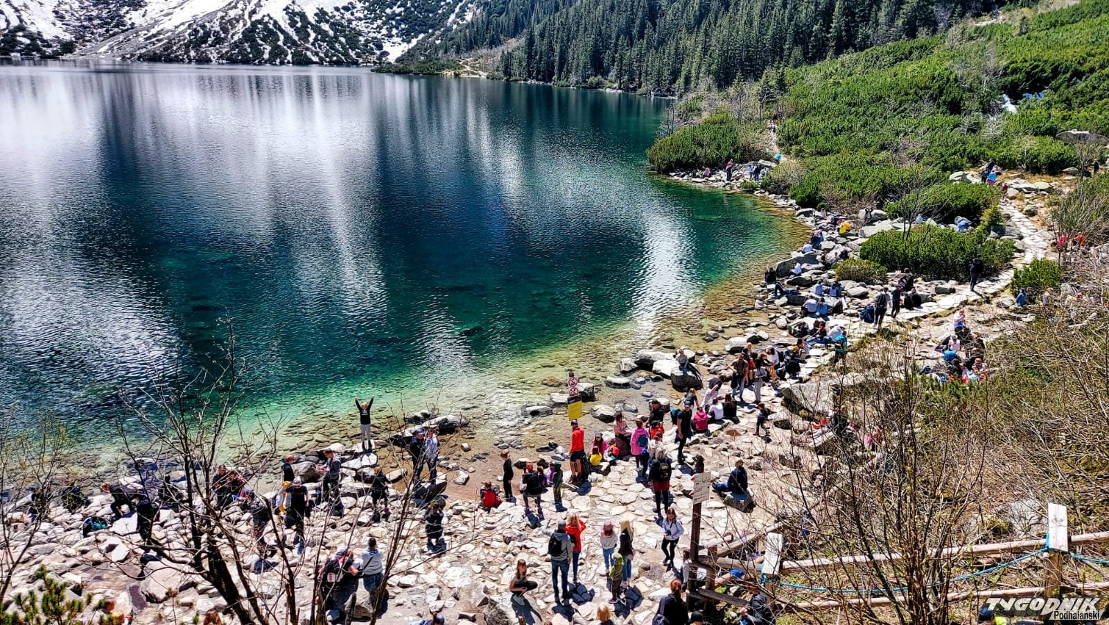 Wystarczył jeden słoneczny dzień, a Morskie Oko przyciągnęło tłumy turystów.