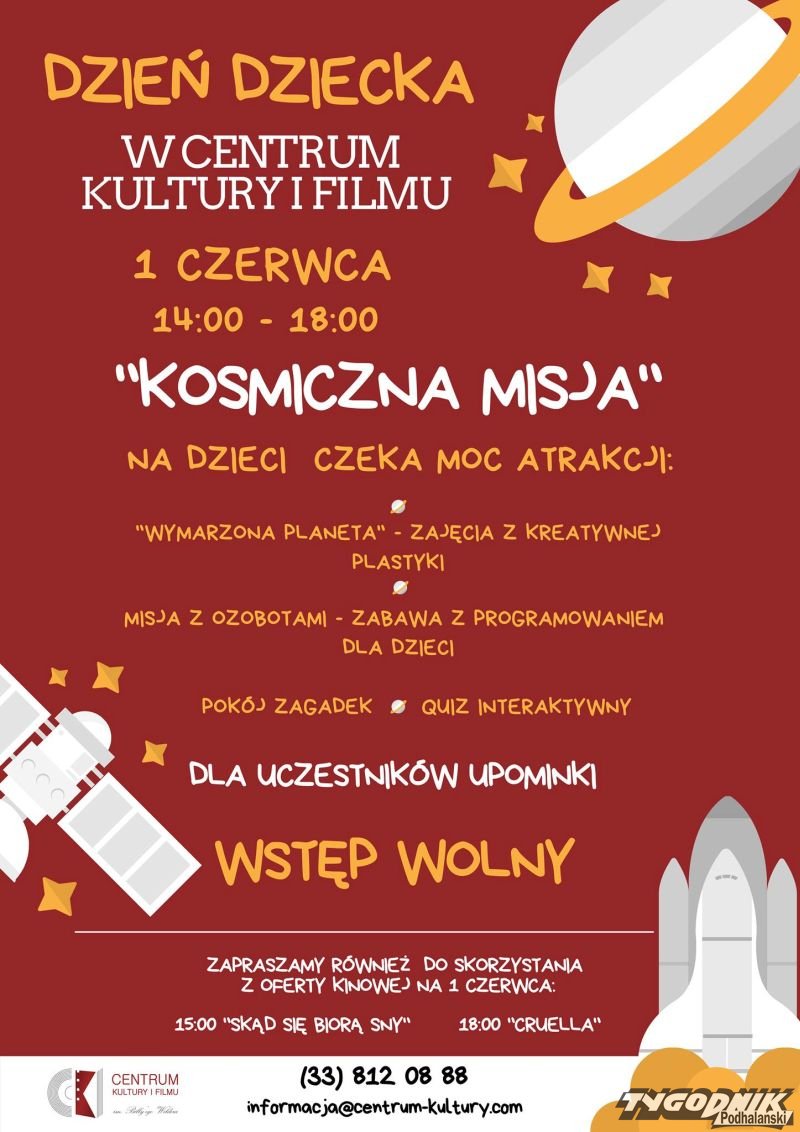 A tam na dzieciaki czeka z okazji Dnia Dziecka moc prawdziwie naukowych atrakcji. Jeśli więc jeszcze nie macie planów, może warto uwzględnić w nich we wtorek 1.06 Centrum Kultury i Filmu w Suchej Beskidzkiej.