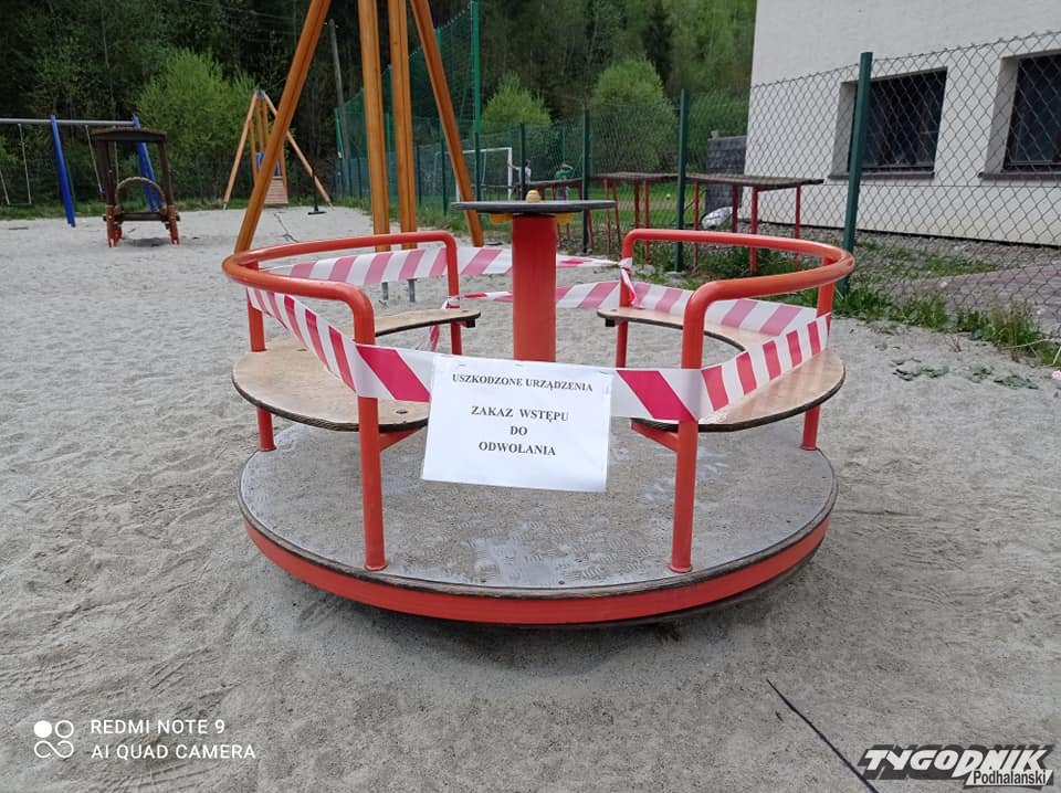 W ten sposób oznakowano trzy urządzenia, z których ze względu na zły stan techniczny nie mogą korzystać dzieci. O problemie na profilu społecznościowym poinformowali strażacy z Krośnicy, zaznaczając, że oznaczone wyposażenie placu przy remizie będzie nieczynne do odwołania. "Urządzenia uległy uszkodzeniu ze względu na czas... Niestety OSP Krośnica nie jest w stanie ich wyremontować czy też wymienić ze względu na swój niski budżet. Liczymy na wsparcie ze strony Urzędu Gminy Krościenko nad Dunajcem" - napisali ochotnicy.