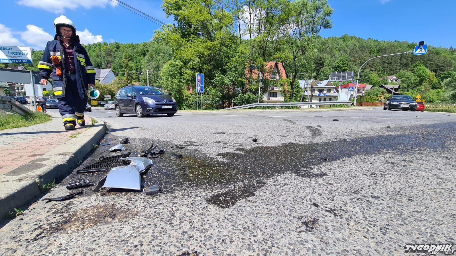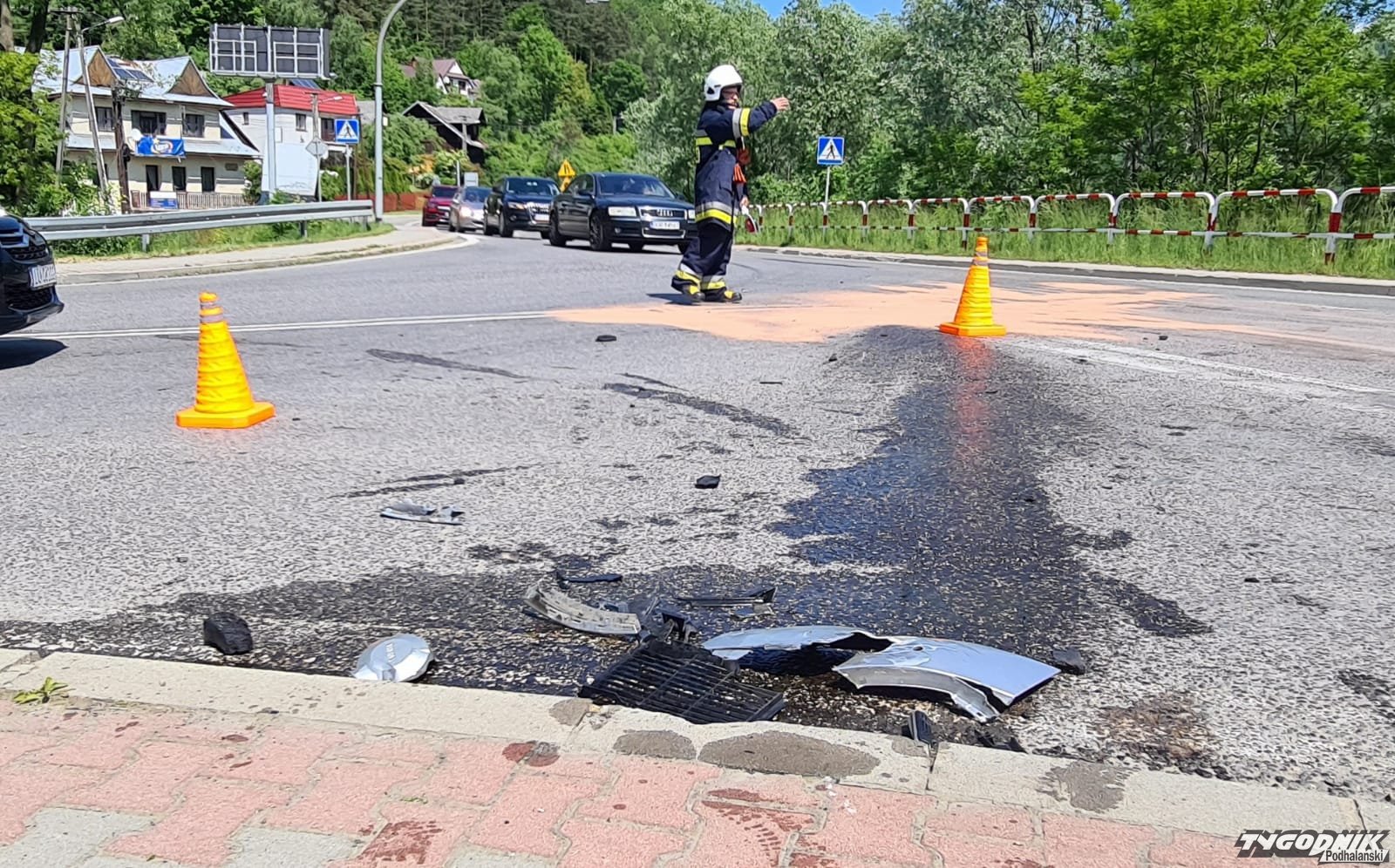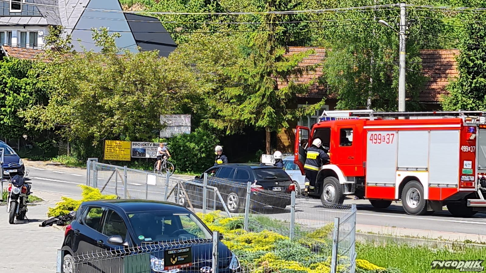 Choć często zderzenie motocykla z samochodem kończą się dramatycznie - tym razem obeszło się bez większych obrażeń. Na miejscu kolizji są strażacy, nikomu z uczestników nic poważniejszego się nie stało.