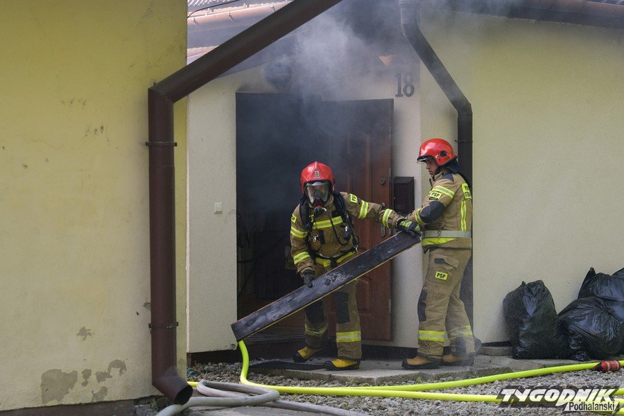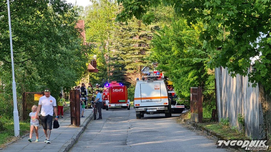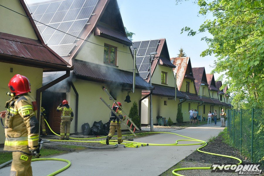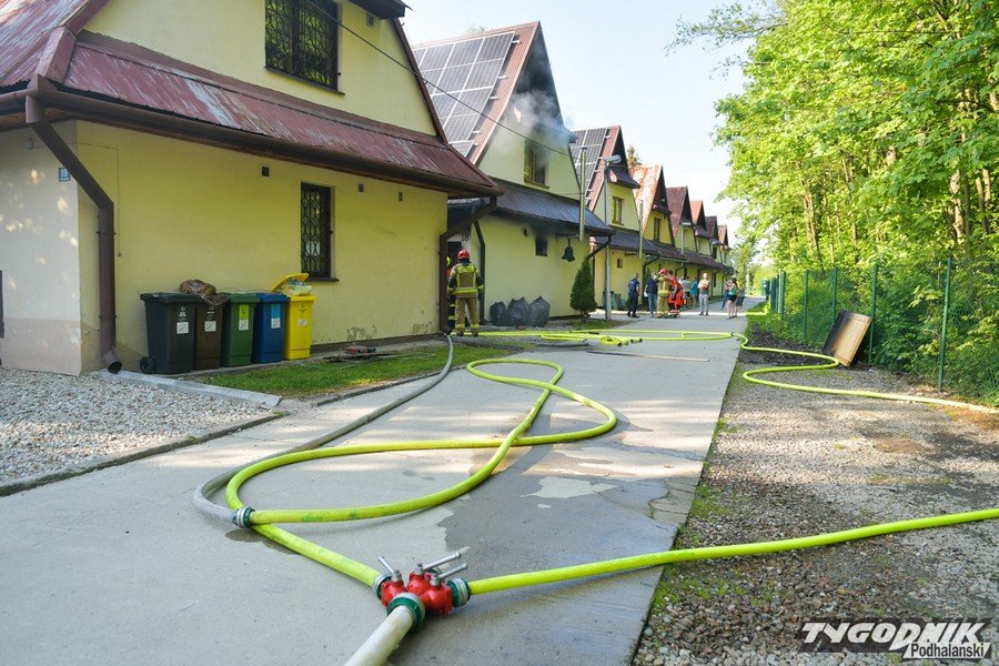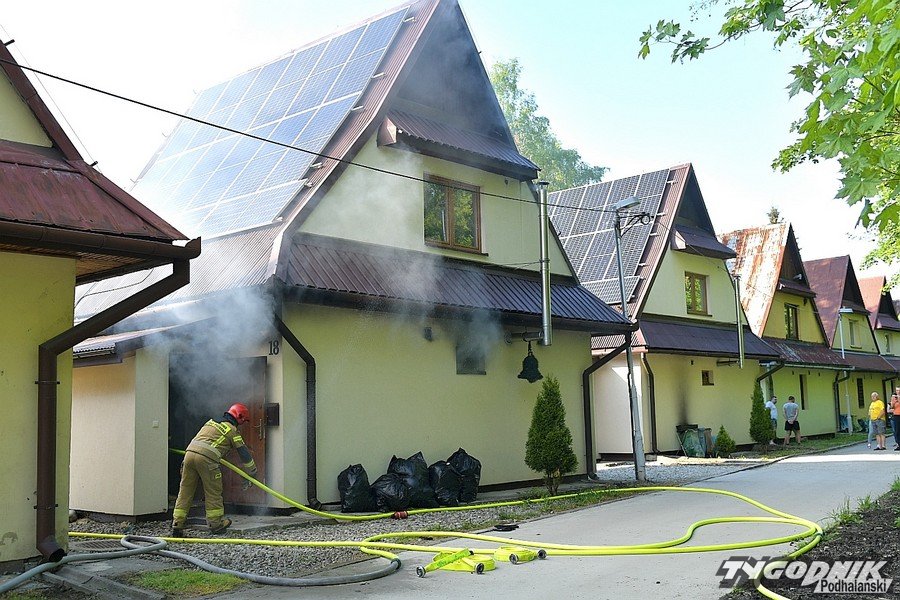 W Zakopanem strażacy dogaszają pożar w osadzie domków kolejowych na Szymonach.