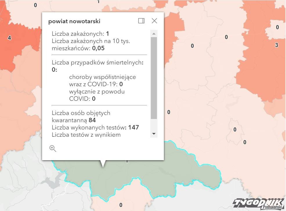 Jeden przypadek w powiecie nowotarskim, zero w tatrzańskim.