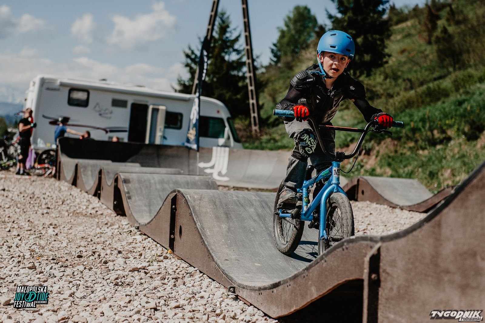 Pompuj człowieku! W tej konkurencji łydka ze stali nie ma żadnego znaczenia, bo wygrać możesz tylko jeśli dobrze wczujesz się w rower i mocno przepracujesz trzy pętle, angażując do jazdy dosłownie każdy mięsień. Pumptrack to konkurencja, która jak sama nazwa wskazuje polega na pompowaniu, czyli rozpędzaniu roweru na specjalnym torze. Zamknięta pętla składa się z nierówności, które zawodnicy wykorzystują by rozpędzić rower i wygenerować jak największy pęd. To świetna zabawa zarówno dla starych wyjadaczy, jak i riderów, którzy pierwszy raz pojawili się w festiwalowym miasteczku.