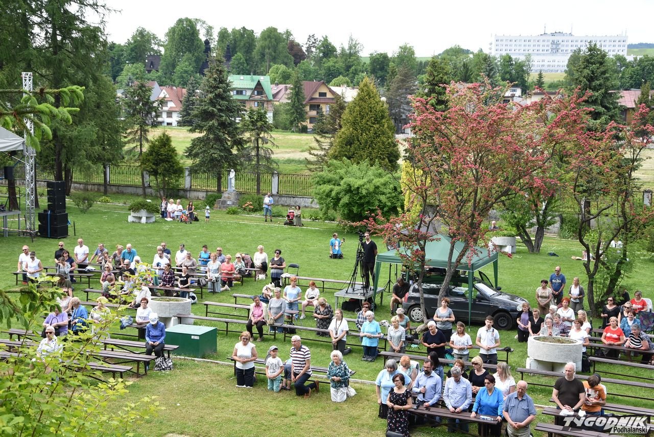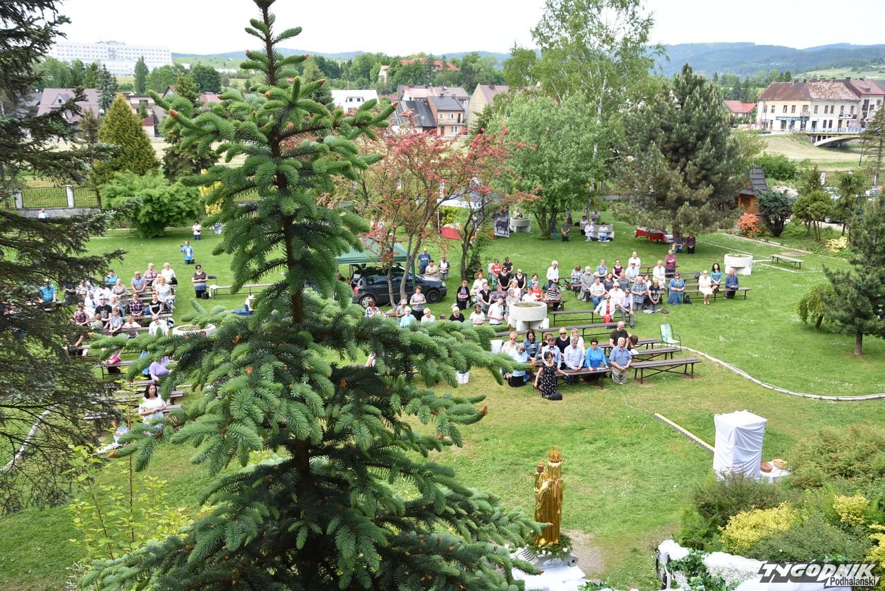 Uwielbienie w ogrodach parafialnych rozpoczęło się od przywitania figury Matki Boskiej Ludźmierskiej, która przyjechała na pięknym białym lańdo, zresztą jak na Królową przystało. Specjalny orszak był eskortowany przez policję, w asyście była też kapela regionalna i oczywiście kapłani.
