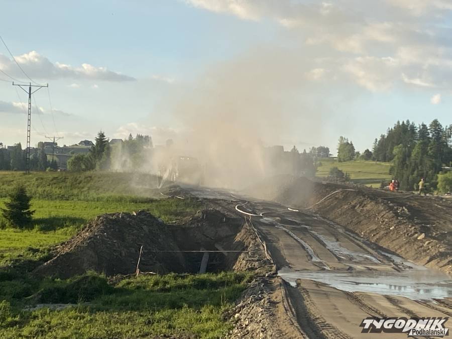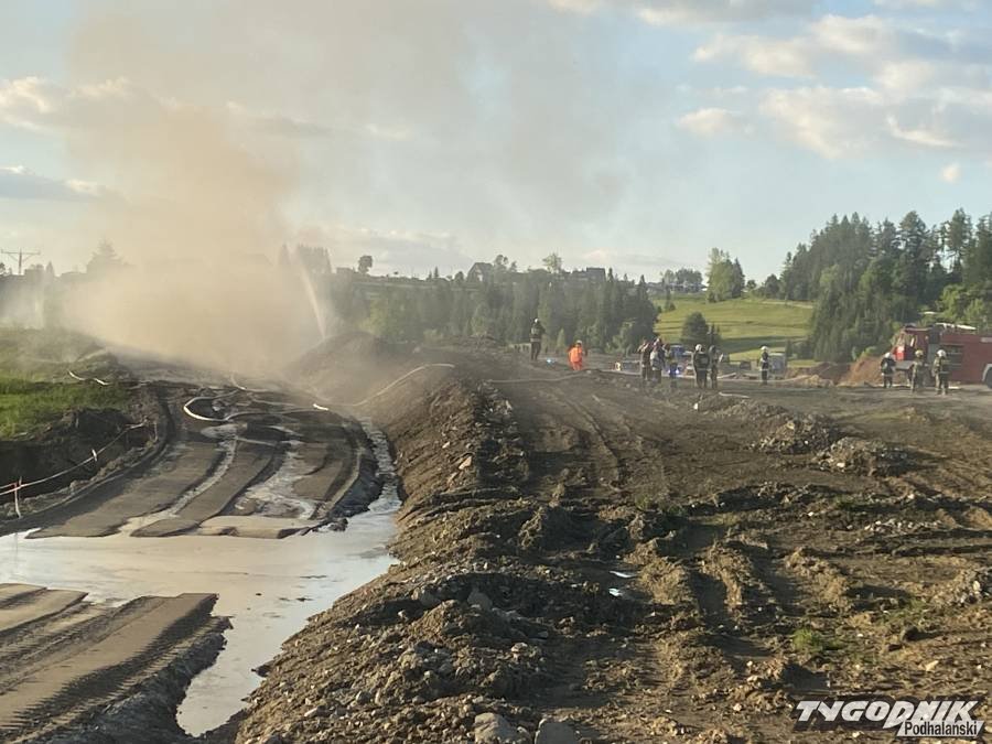 Podczas zagęszczania gruntu doszło do uszkodzenia gazociągu i wybuchu. Przejazd zakopianką jest całkowicie zablokowany.
