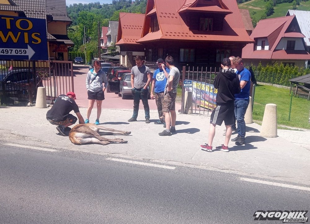 Kierowca nie odniósł obrażeń. Łania niestety leży na chodniku. - Na miejsce jedzie policyjny patrol. W takich sytuacjach wzywany jest też łowczy - mówi Roman Wieczorek, rzecznik zakopiańskiej policji.