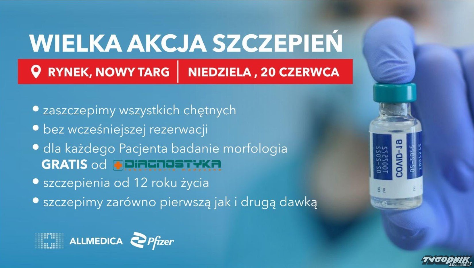W niedzielę będą szczepić na nowotarskim Rynku również dzieci