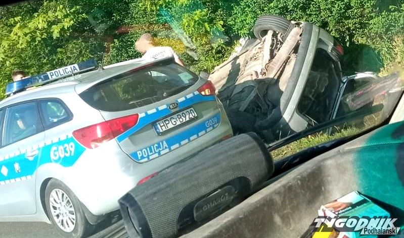 Dachowanie w Szaflarach. Kierowca zasnął za kierownicą