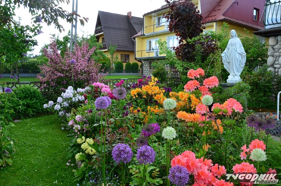 Ogród, w którym na chwilę obecną królują rododendrony, podzielony jest na dwie części. Ta pierwsza, przyklejona tuż do domu, kryje w swoim wnętrzu figurkę Matki Bożej i sadzawkę. A ta druga, zlokalizowana na wąskiej, mierzącej niespełna 8 arów działce zaskakuje pomysłowością aranżacji, oczkiem wodnym, kącikiem do wypoczynku i wdzięczną, drewnianą kładką. - Kiedyś była to zwykła łąka, na której pasły się krowy – wspomina dawne dzieje pani Zofia. – Ale za sprawą całej naszej rodziny udało się na niej urządzić ogród.