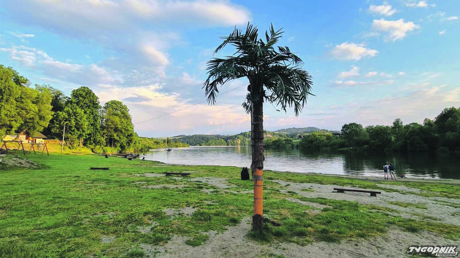 Kontrowersyjna palma na plaży w Kluszkowcach jeszcze stoi