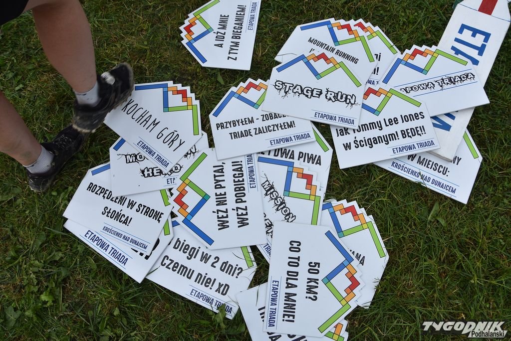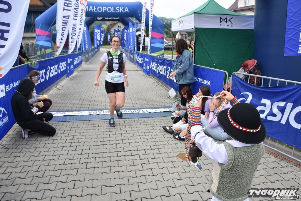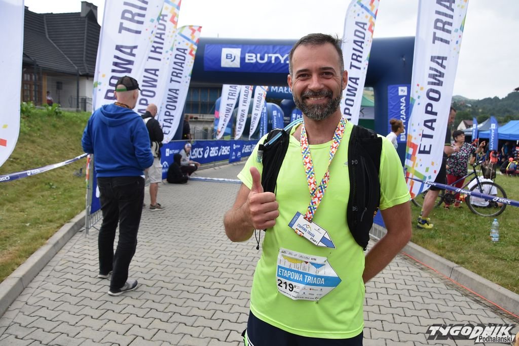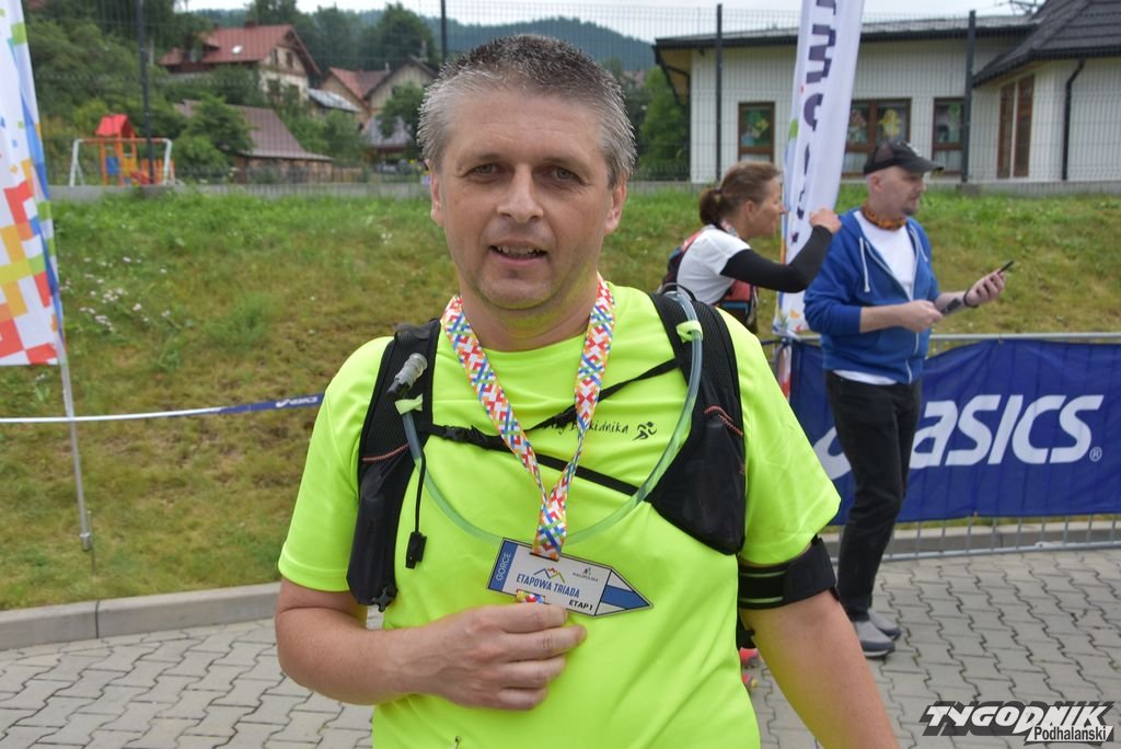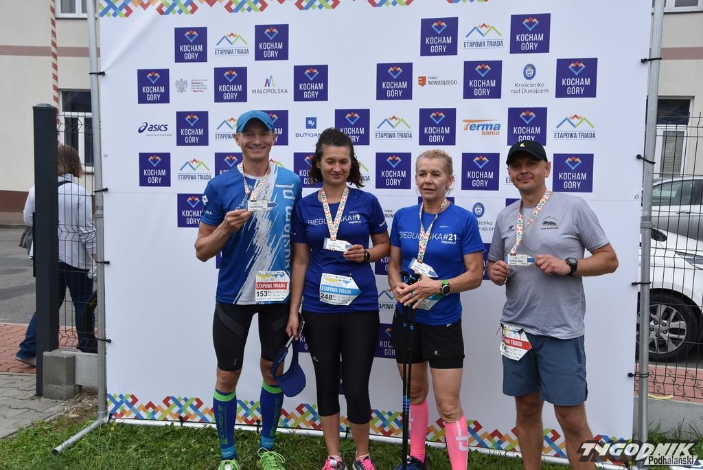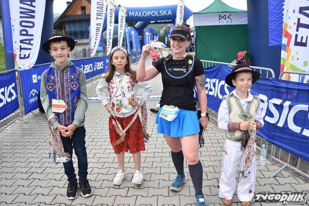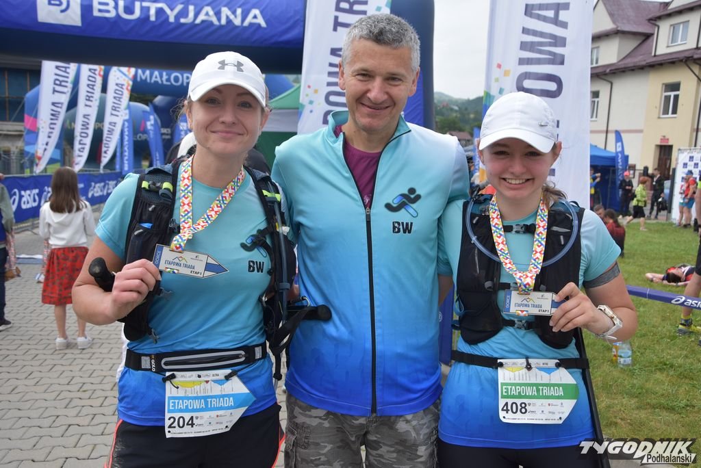 Weekend biegowy zgromadził około 500 osób z różnych stron naszego kraju. - Po prostu fajnie spędzony czas - mówił na mecie przy OSP Krościenko nad Dunajcem Piotr Domański z okolic Warszawy. Zawody ukończył też pan Piotr z Krakowa i panie Beata oraz Zuzanna. - Przy okazji sprawdzamy naszą formą. Okazuje się, że jest całkiem w porządku - śmiali się zawodnicy. Na mecie czekali na nich mali górale z medalami, byli też kibice, którzy każdego zawodnika nagradzali brawami. Uczestnicy triady mogli nawet w czasie zawodów przetestować buty do biegów.
