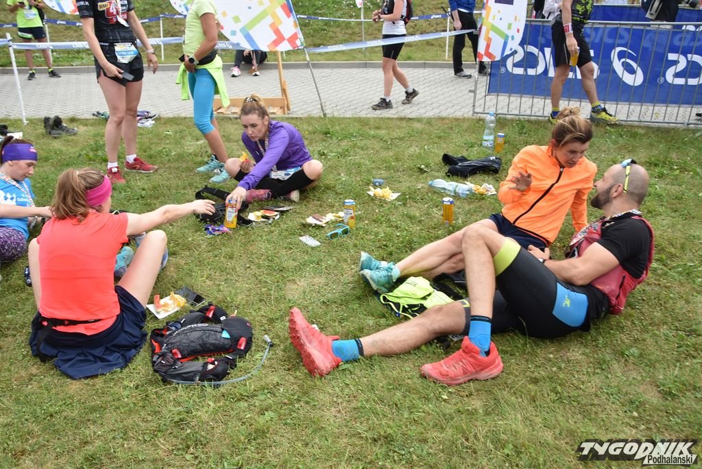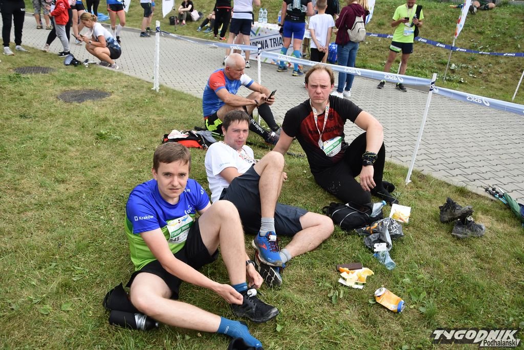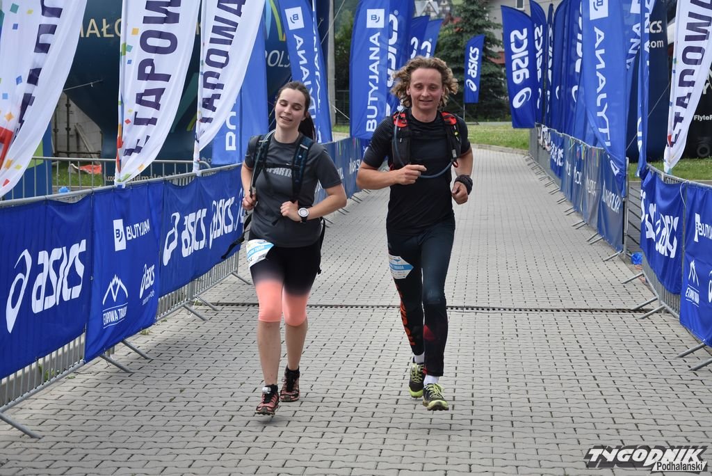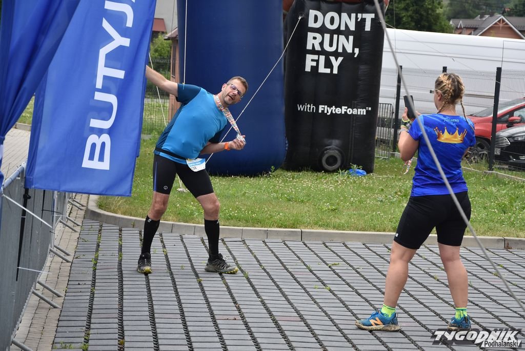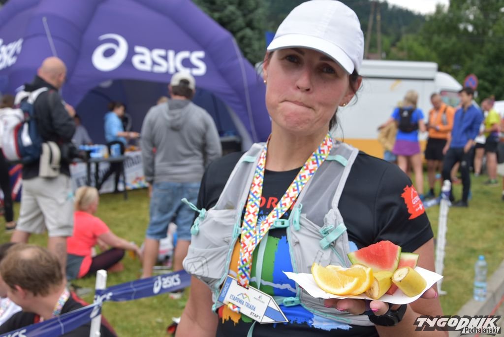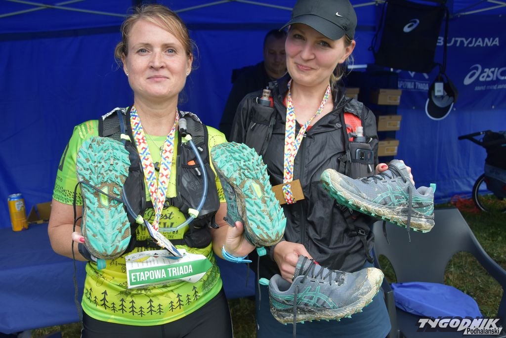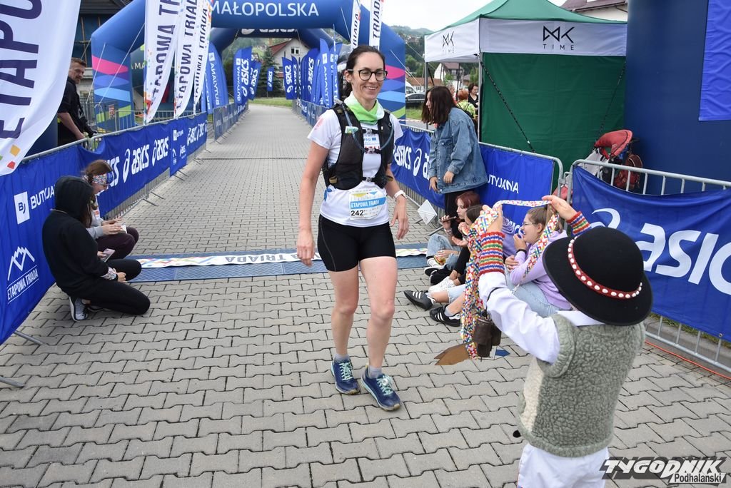 Weekend biegowy zgromadził około 500 osób z różnych stron naszego kraju. - Po prostu fajnie spędzony czas - mówił na mecie przy OSP Krościenko nad Dunajcem Piotr Domański z okolic Warszawy. Zawody ukończył też pan Piotr z Krakowa i panie Beata oraz Zuzanna. - Przy okazji sprawdzamy naszą formą. Okazuje się, że jest całkiem w porządku - śmiali się zawodnicy. Na mecie czekali na nich mali górale z medalami, byli też kibice, którzy każdego zawodnika nagradzali brawami. Uczestnicy triady mogli nawet w czasie zawodów przetestować buty do biegów.