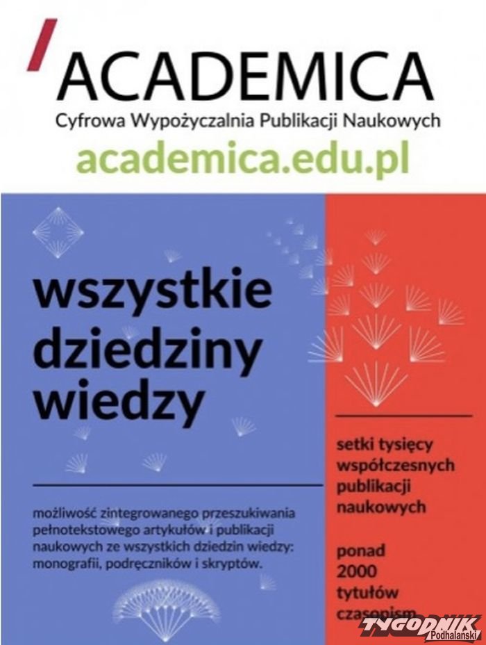 Darmowa wypożyczalnia Academica umożliwia korzystanie ze zbiorów cyfrowych Biblioteki Narodowej. Daje dostęp do 3 442 320 publikacji ze wszystkich dziedzin wiedzy, również najnowszych, objętych ochroną prawa autorskiego.