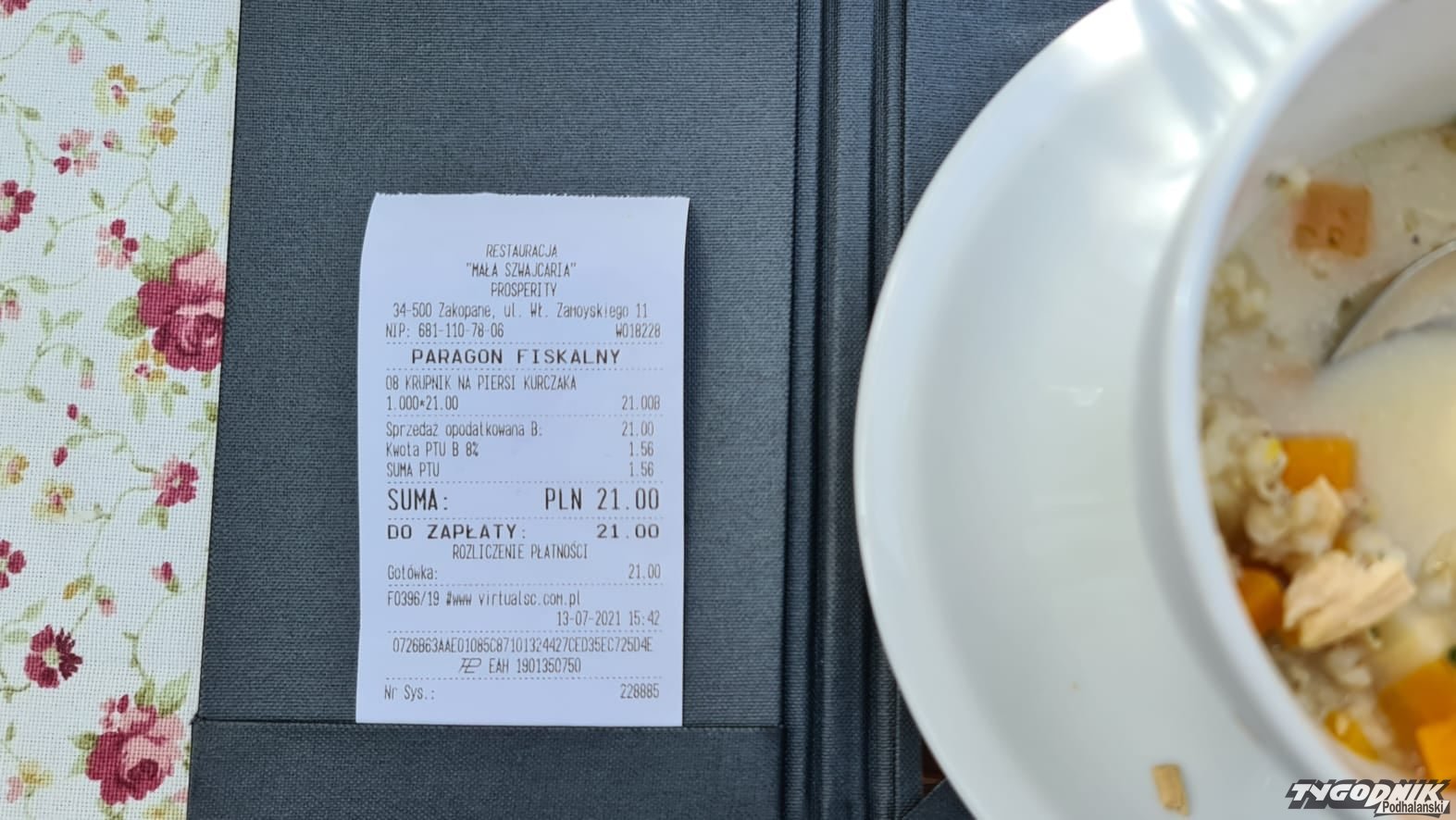 21 złotych za talerz krupniku trzeba zapłacić w jednym z zakopiańskich lokali w centrum miasta. Uważacie, że to właściwa cena, czy też lekka przesada? Gdy pokazaliśmy to zdjęcie na Facebooku, wybuchła niekończąca się dyskusja. Jedni twierdzą, że to przesada. Inni zwracają uwagę, że to dobra restauracja, w której trzeba zapłacić więcej niż w barze mlecznym. Jeszcze inni piszą, że mamy wolny rynek i jeśli ktoś chce zjeść taniej, może iść w inne miejsce. Pojawiają się też głosy, że restauratorzy chcą nadrobić straty po czasie pandemii i wykorzystują duży ruch na początku lipca.
