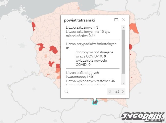 W powiecie tatrzańskim odnotowano trzech pacjentów zakażonych koronawirusem, a w powiecie nowotarskim mamy wyzerowany licznik.