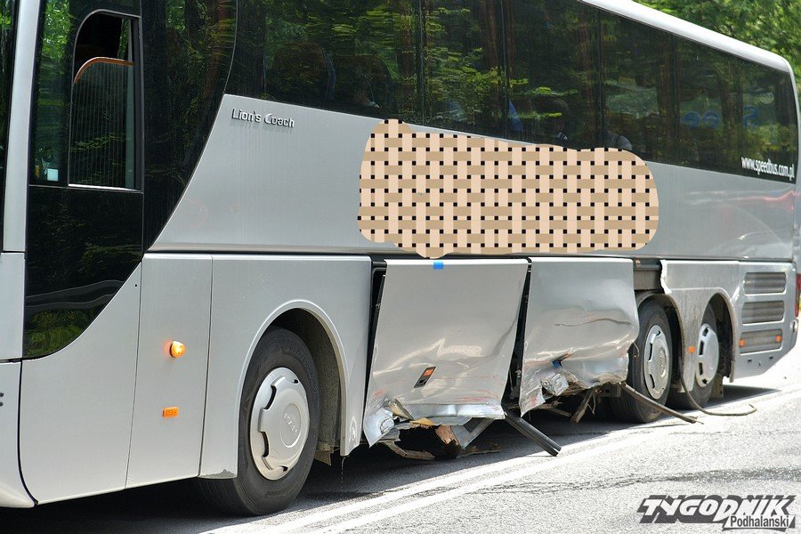 Osobówka kontra autokar z dziećmi - korki na Cyrhli