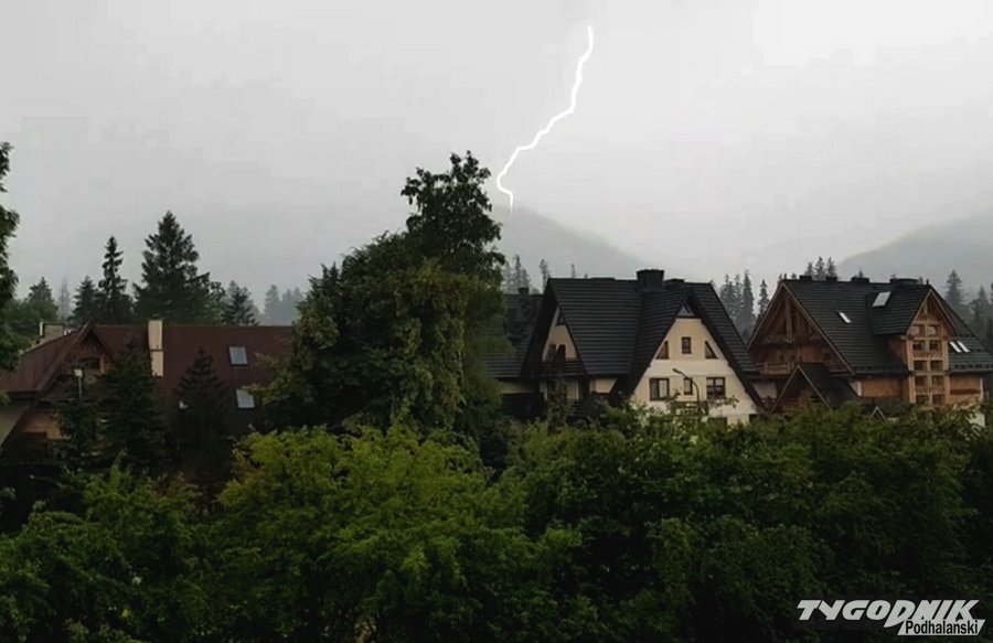 Ulewny deszcz, błyskawice, wszystko trwało prawie godzinę. To druga już dziś ulewa, która przeszła nad Zakopanem. W sumie miejscami spadło już dziś prawie 40 mm deszczu. Od jutra na szczęście pogodowe uspokojenie. Burze będą mniej aktywne, mniejsze będą opady i temperatury.