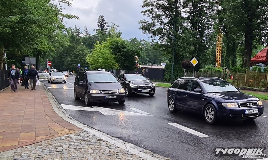 Deszczowa pogoda sprawia, że wielu turystów nie wybrało się w Tatry. Docierają autami blisko centrum, później chcą z tego centrum wyjechać. Do tego dochodzą auta zakopiańczyków, którzy na przykład ok. godz. 16 kończą pracę. To wszystko sprawia, że korkuje się skrzyżowanie ul. Zamoyskiego i Chałubińskiego oraz okolice ronda Jana Pawła II.