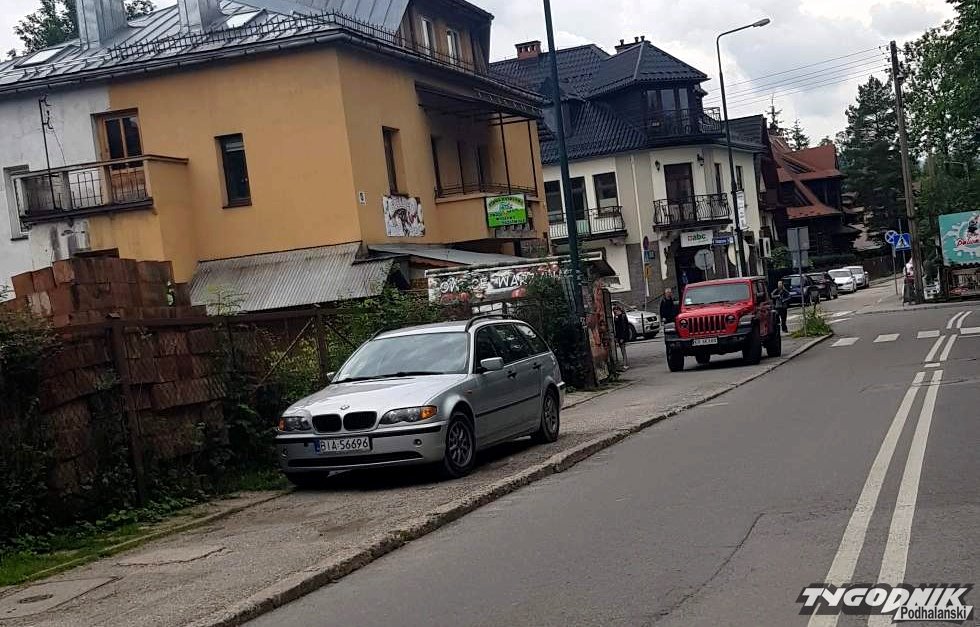 Zdjęcie dwóch aut zaparkowanych na chodniku przy ul. Orkana w Zakopanem przesłał nam Czytelnik. Jedno z aut zaparkowało na całej szerokości chodnika. Drugi kierowca pozostawił pieszym miejsce. Wjechał jednak na chodnik tak, że przechodzący przez przejście wchodzą na jezdnię zza zaparkowanego auta.