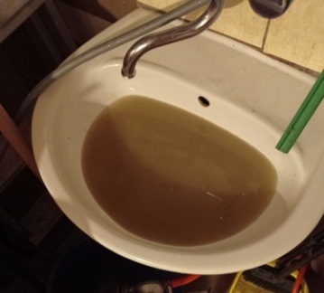 Mieszkańcy Białego Dunajca od kilku dni skazani są na zawiesistą, a teraz już coraz ciemniejszą wodę płynącą w ich wodociągu.
