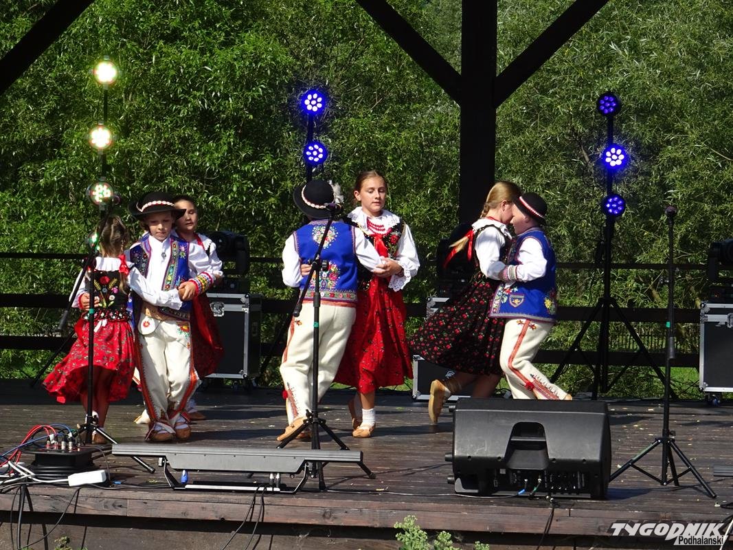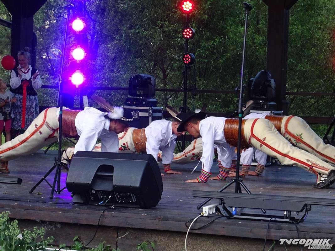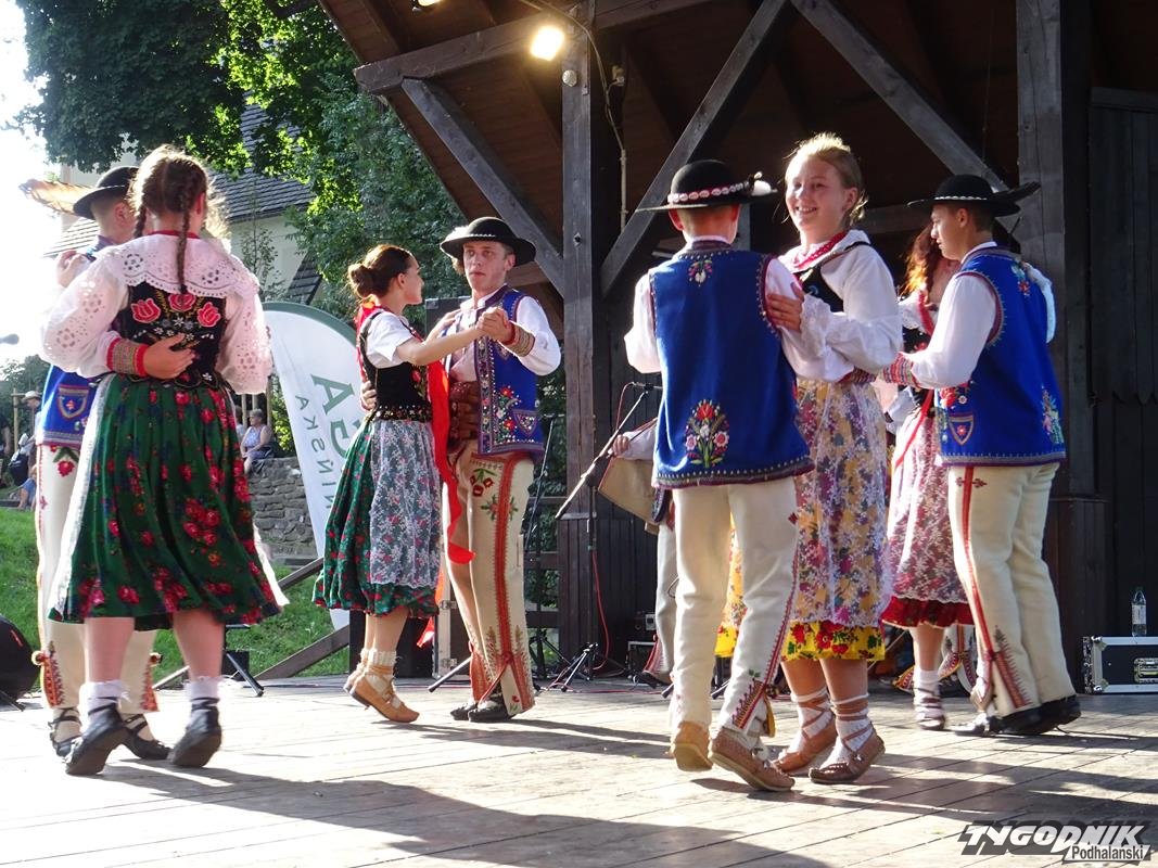 Na scenie zaprezentowali się gospodarze, czyli „Małe Pieniny”, „Pienińskie Nucicki” i „Pienińskie Śpasy”. - Zespół dziecięcy „Małe Pieniny”, występując w oryginalnych krościeńskich strojach ludowych, zachwycił aranżacją - podkreśla Józef Szałwia, dyrektor Centrum Kultury i Promocji. - Występując jako pierwszy, zebrał gromkie brawa. Równie owacyjnie zostały przyjęte i pozostałe pienińskie zespoły, a szczególnie urzekł publiczność taniec zwany „Niedźwiedź”, wymagający sporej sprawności fizycznej.