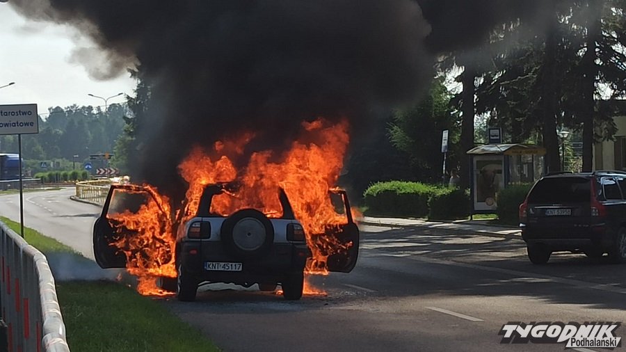 Płonie auto na Alejach Tysiąclecia w Nowym Targu, o włos od wybuchu (WIDEO)