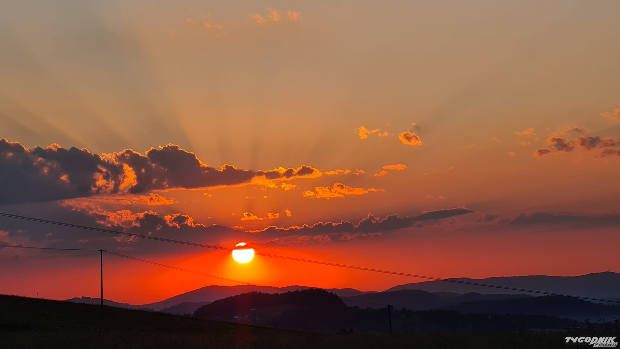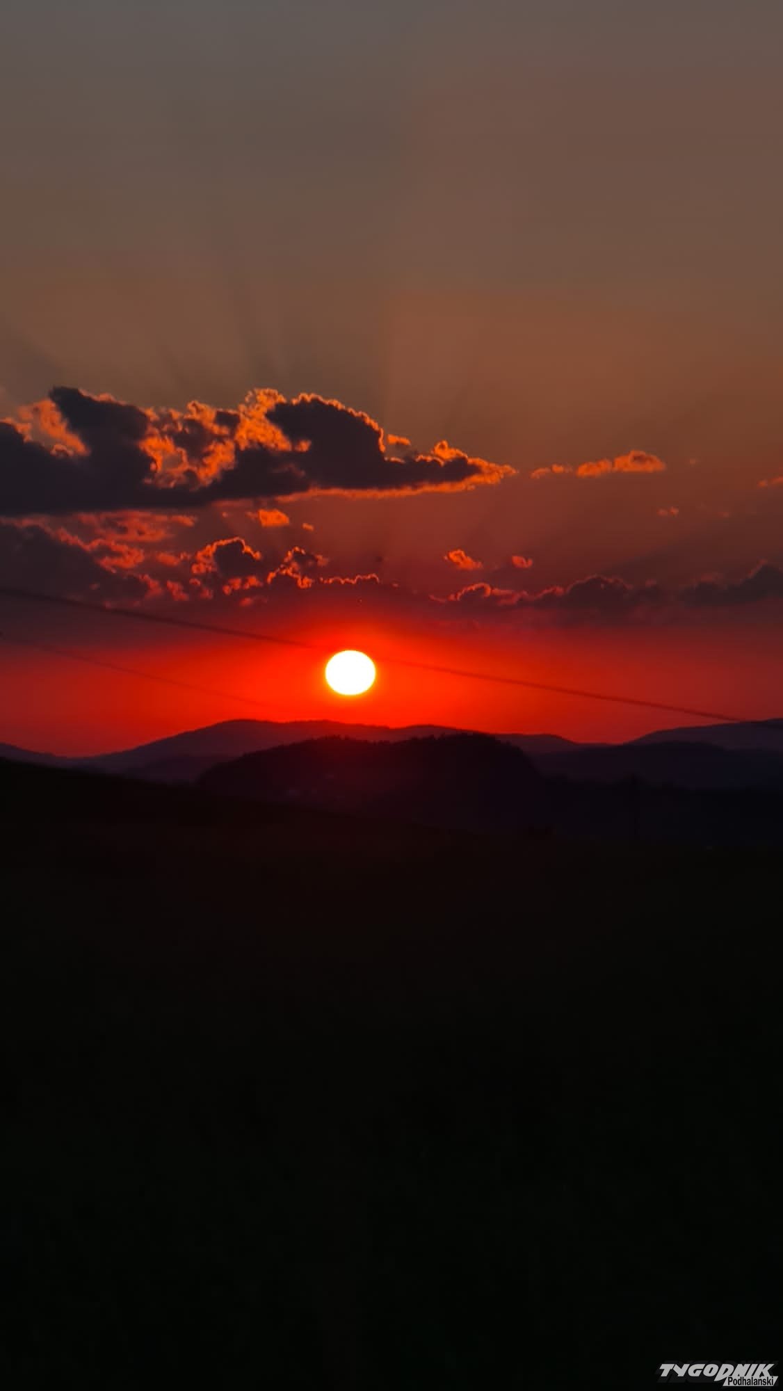 Zobaczcie, jak pięknie zachodziło dziś słońce nad Jeziorem Rożnowskim, temperatury na południu Polski dochodziły dziś do 30 st. C. Niestety, jutro pogoda zepsuje się. Z zachodu nadciągnie front atmosferyczny. Już od godz. 11 na Podhalu spodziewane są burze, przejaśni sie dopiero wieczorem.