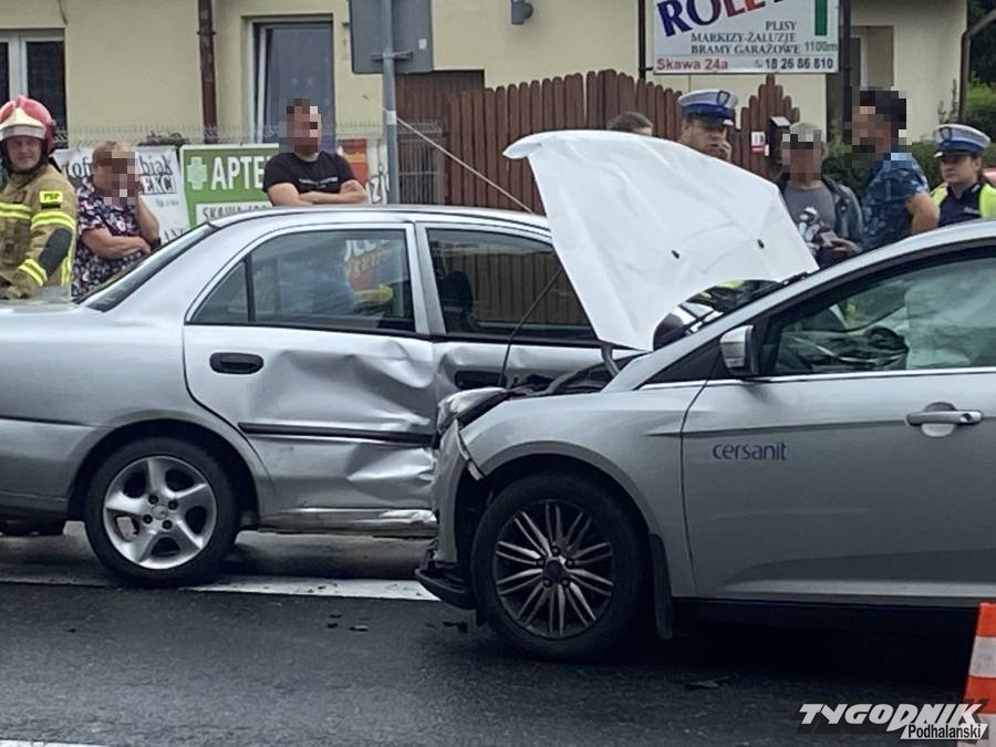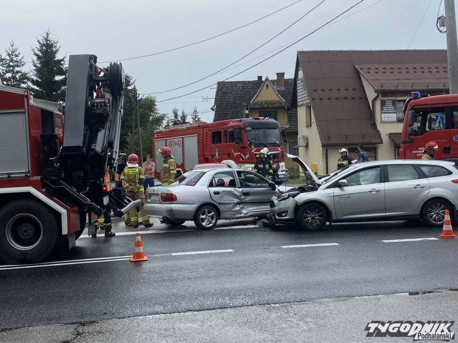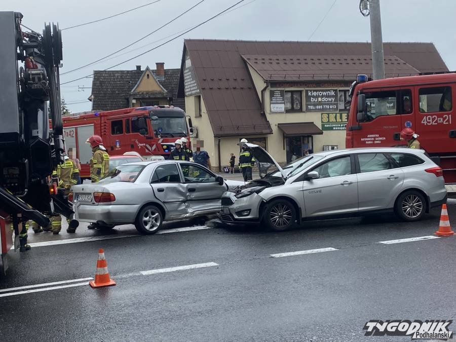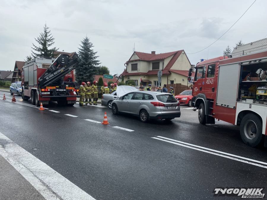 Wypadek zdarzył się po 11 w obrębie skrzyżowania krajowej siódemki i drogi lokalnej łączącej Skawę i Chabówkę. Obydwa biorące udział w kolizji auta są mocno uszkodzone. Na szczęście nikt nie odniósł poważniejszych obrażeń. Na miejscu wypadku pracują strażacy i policjanci. Ruch drogą krajową odbywa się wahadłowo. Tworzą się korki.
