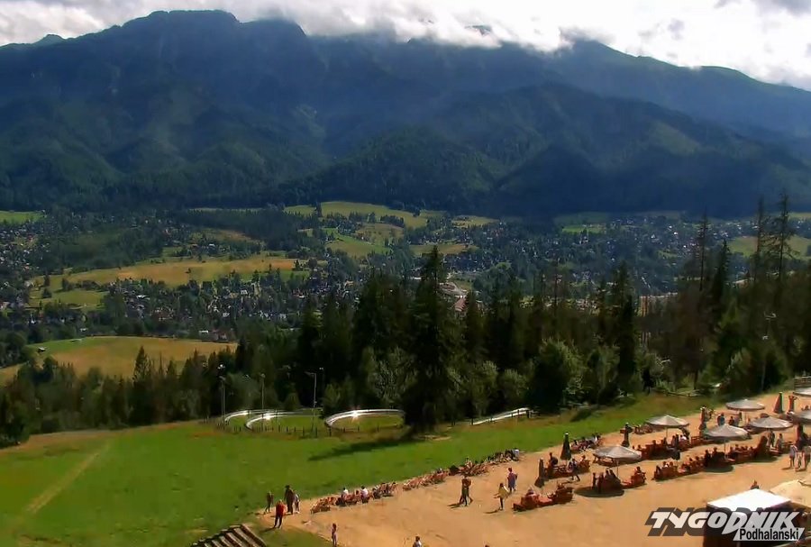 Ulewny poranek, przed- i popołudnie za nami. Tak jak prognozowali synoptycy, zza deszczowych chmur wyjrzało słońce. Tłumy turystów ruszyły nie tylko na Krupówki, ale na Gubałówkę. Opisywana przez nas niedawno plaża, jaką urządziły Polskie Koleje Linowe szybko się zapełnia. Nic dziwnego - można tu się zrelaksować i nacieszyć widokiem tatrzańskich szczytów.