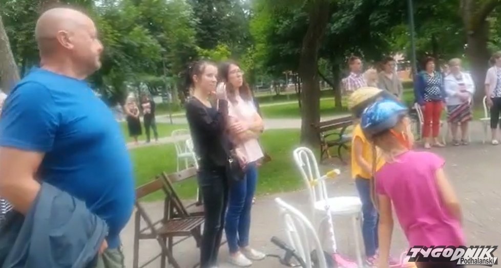 Park Miejski w Nowym Targu. Godzina zero. Wszyscy się zatrzymali i minutą ciszy uczcili 77. rocznicę Powstania Warszawskiego.