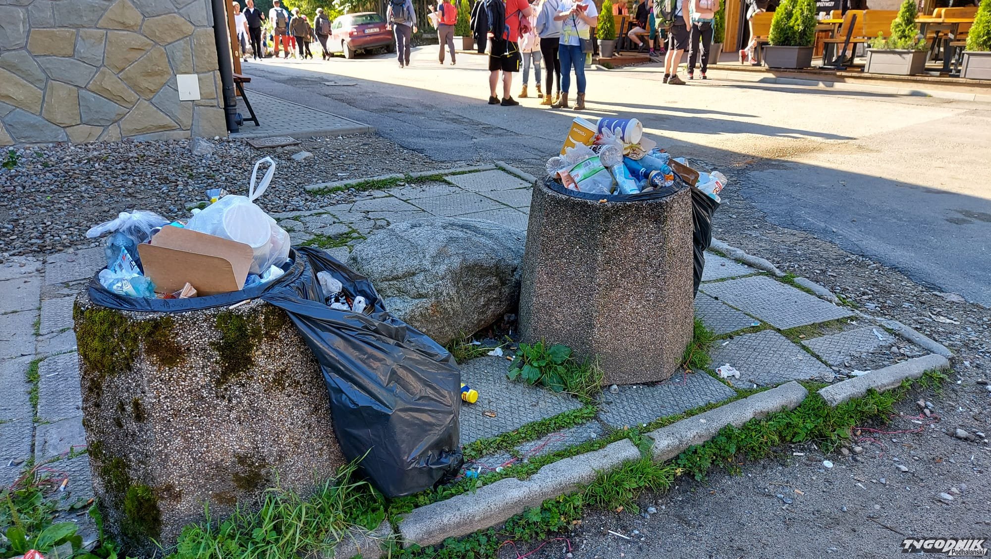 Ktoś chyba zapomniał opróżnić kosze na śmieci w Kuźnicach... brzydko, bardzo brzydko...