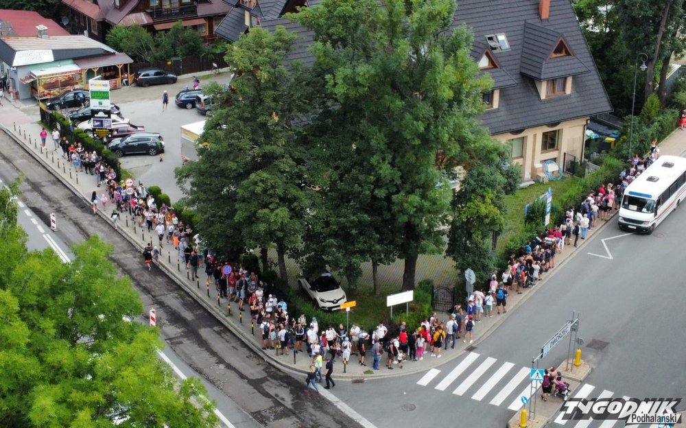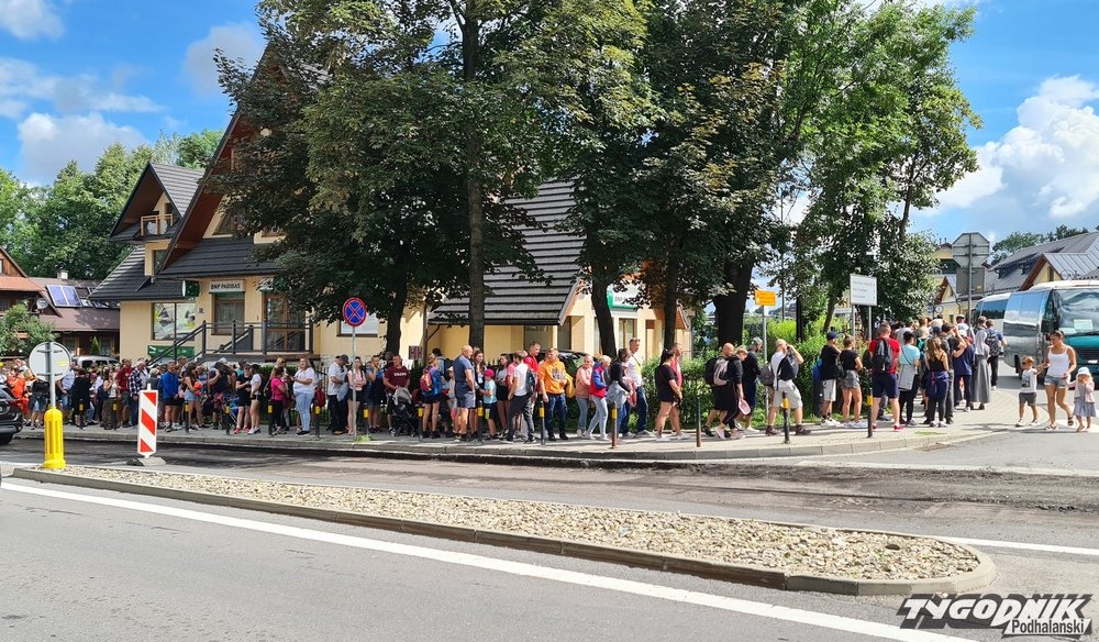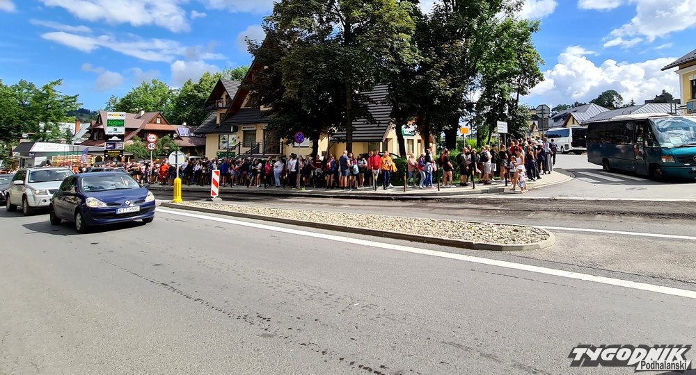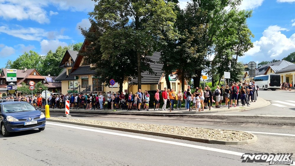 - Co to za kolejka? Za czym oni stoją, do jakiś autobusów turystycznych? - pytają turyści spacerujący ulicą Chramcówki naprzeciwko najdłuższej w historii kolejki do busa do Morskiego Oka. Rano świeciło słońce i tysiące osób chcą dotrzeć nad Morskie Oko. Wszystkie miejsca na parkingach na Palenicy Białczańskiej i Łysej Polanie były już wczoraj zarezerwowane. Jedyna szansą na dotarcie na początek szlaku nad Morskie Oko jest więc bus. Do tego wszystkiego dochodzi remont Ronda Armii Krajowej przed dworcem przez co w Zakopanem tworzą się gigantyczne korki.