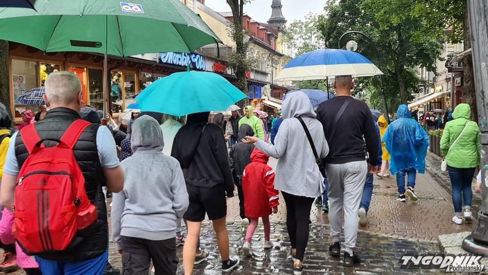 Turyści w ten niezwykle deszczowy dzień ruszyli na Krupówki.