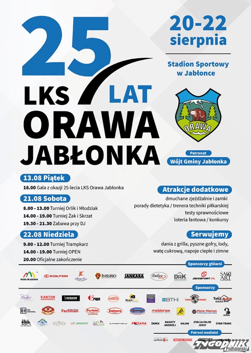 Na początek w piątek 20.08 o godz. 18 będzie to uroczysta gala w Orawskim Centrum Kultury. W sobotę i niedzielę zaś (21-22.08), na stadionie w Jabłonce zaplanowano turnieje, zabawę przy muzyce i inne atrakcje.
