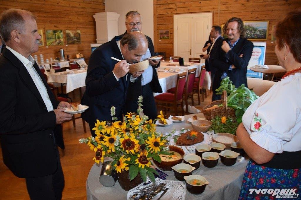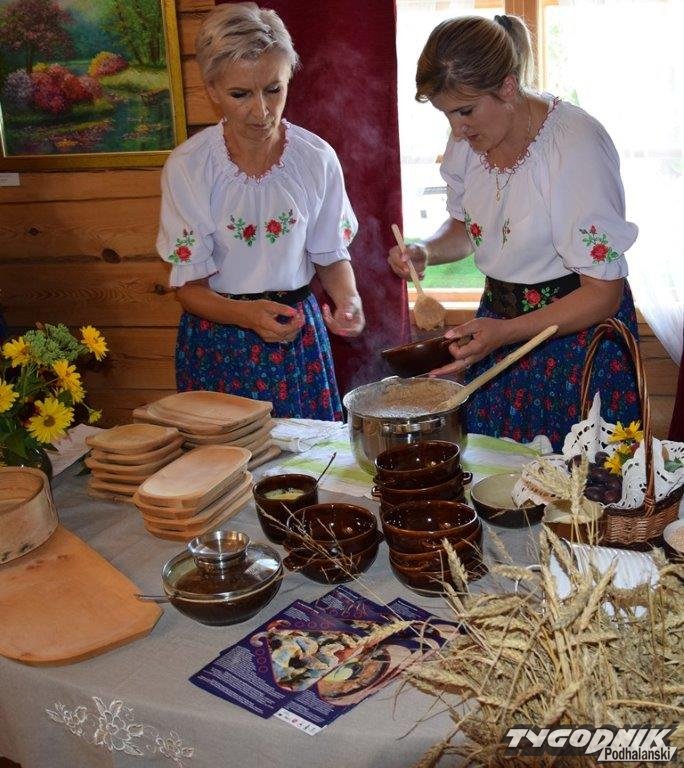 Nie mogło zabraknąć potraw z terenów górskich. Tym razem zdominowały je smakołyki górali zagórzańskich: kluski rozgarnywane zwane sapką, pierogi z suszonymi śliwkami, kołacz razowy na słono i zupa z karpieli na mleku. Zgłosiły je Śwarne Babki z Koła Gospodyń Wiejskich Łętowe.