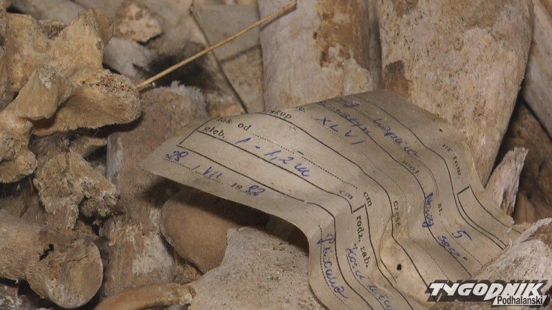 Ktoś najwyraźniej ewidencjonował szczątki. W kartonach pomiędzy szczękami, kośćmi udowymi i piszczelami znajdujemy pożółkłe karteczki z informacją "Maniowy - kaplica. Gmina Czorsztyn. Głębokość 1-1,2 metra. Kości luźne. 29 VII 1992".