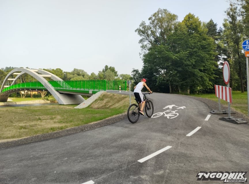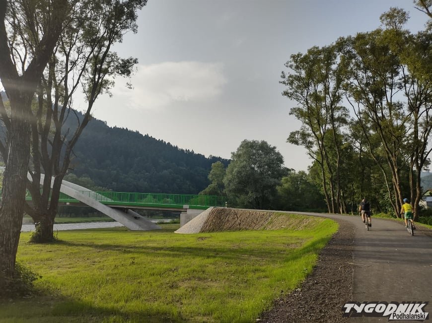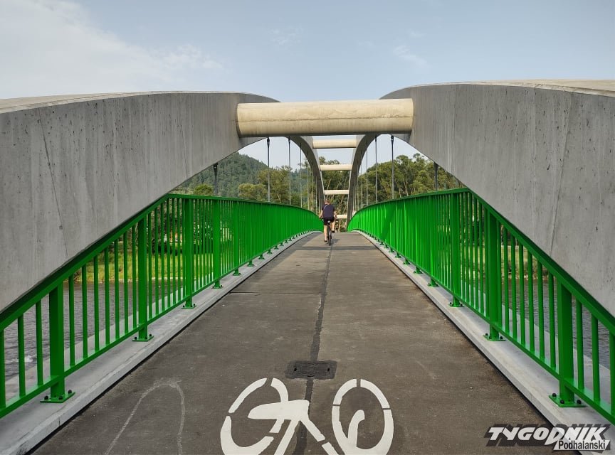 Kładka w Krościenku spinająca oba brzegi Dunajca cieszy się sporym powodzeniem. Na ścieżkę VeloDunajec łączącą pienińską miejscowość z Tylmanową rowerzyści muszą poczekać do października.