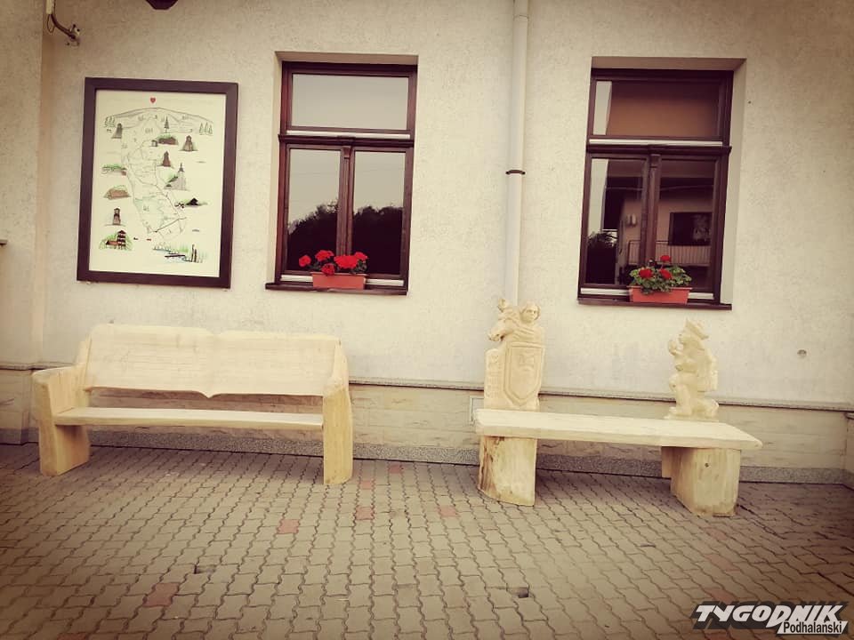 Rzeźbione ławeczki na swoim miejscu