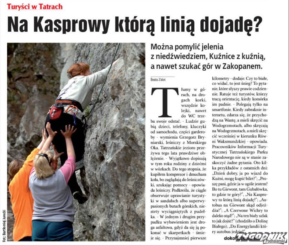 Pracowników Informacji Turystycznej Tatrzańskiego Parku Narodowego nie są w stanie zaskoczyć żadne pytania. Oto kilka przykładów z ostatnich dni: "Dzień dobry, ja po wjazd do Kuźni, mogę kupić bilet?"; "Proszę pani, gdzie ja w ogóle jestem? Bo tu Giewont, tam Gubałówka, to gdzie te góry?”, „Na Kasprowy to którą linią dojadę?”; „Autobus na Giewont skąd odjeżdża?”; „A Czerwone Wichry to daleko stąd?”; „Na ten biały szlak to jak dojść?” (chodziło o Dolinę Białego); „Do Energylandii który autobus jedzie?”.
