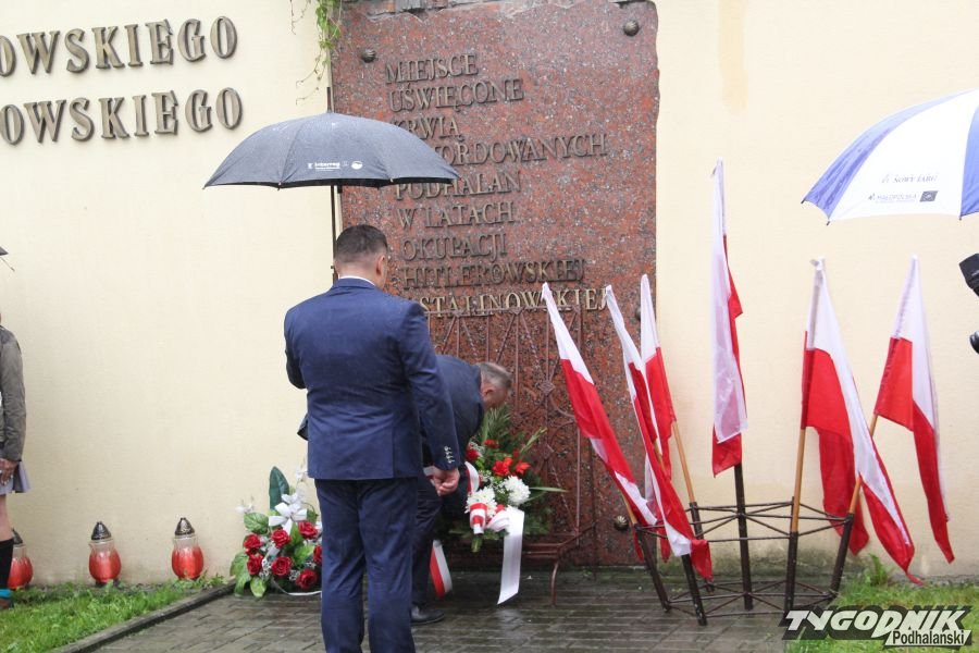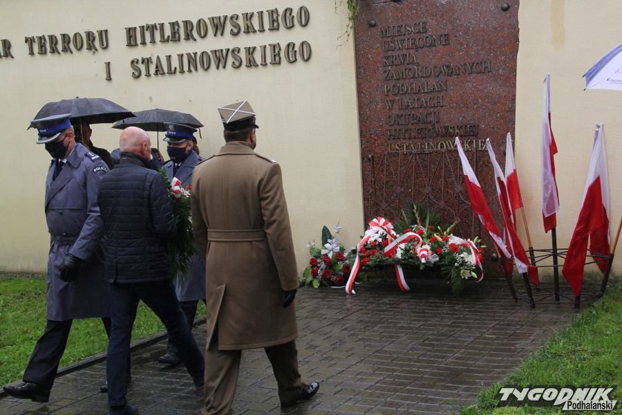 Tu przy Placu Kombatantów uczestnicy odśpiewali Mazurka Dąbrowskiego, Rotę, a potem delegacje złożyły kwiaty pod miejscem upamiętniającym ofiary terroru hitlerowskiego i stalinowskiego.