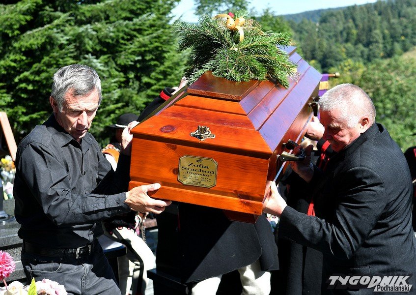 Przy pięknej, słonecznej pogodzie góralska muzyka prowadzi Zofię Bigosową w jej ostatnią drogę. Działaczka była przewodniczącą Stowarzyszenia Właścicieli Wywłaszczonych Pól i Hal w Tatrach. Znana z ostrego, ciętego języka i poczucia humoru mówiła bez ogródek o góralskiej krzywdzie udzielając się w mediach, prowadząc telewizyjne programy, do których zapraszała zacnych gości. Dziś towarzyszą jej najbliżsi, rodzina, przyjaciele, lokalna społeczność.