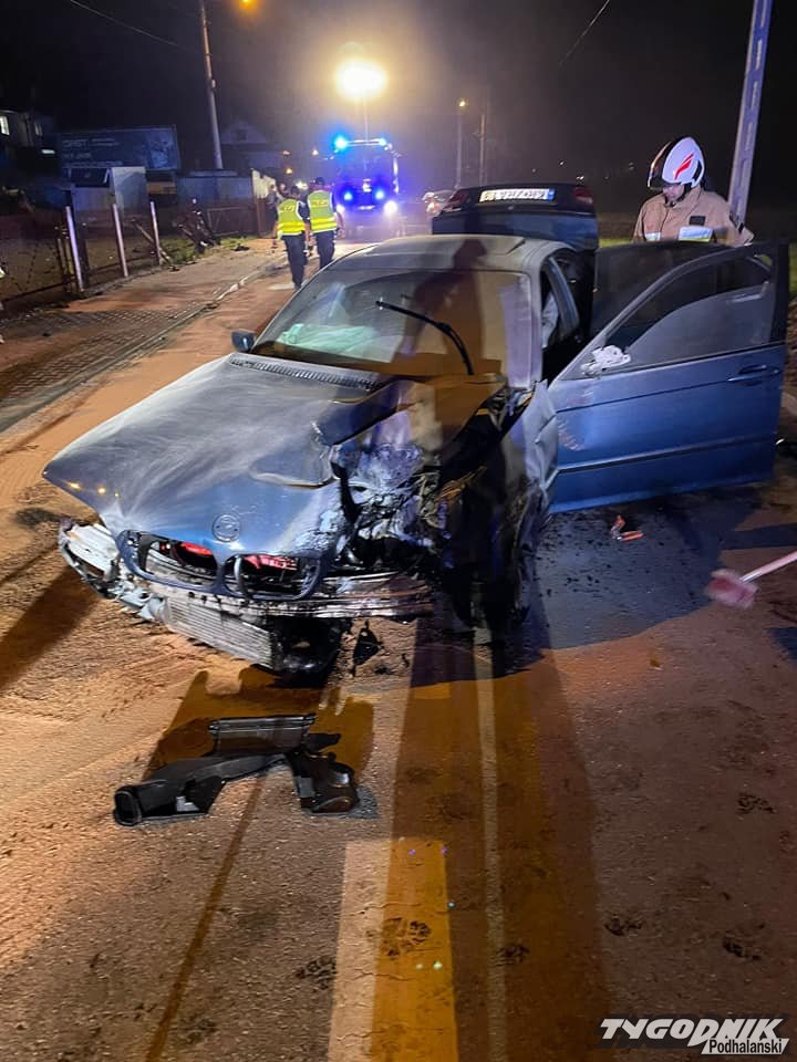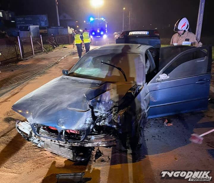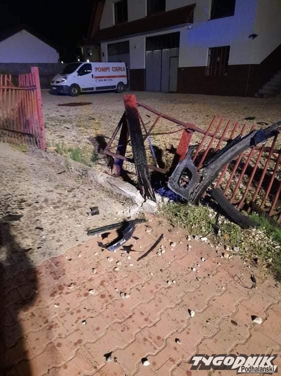 Bmw zderzyło się z dwoma innymi autami i zdemolowało ogrodzenie.