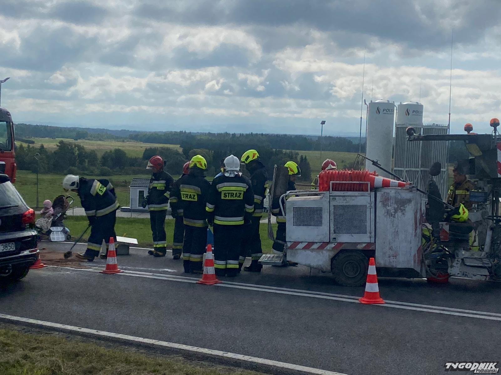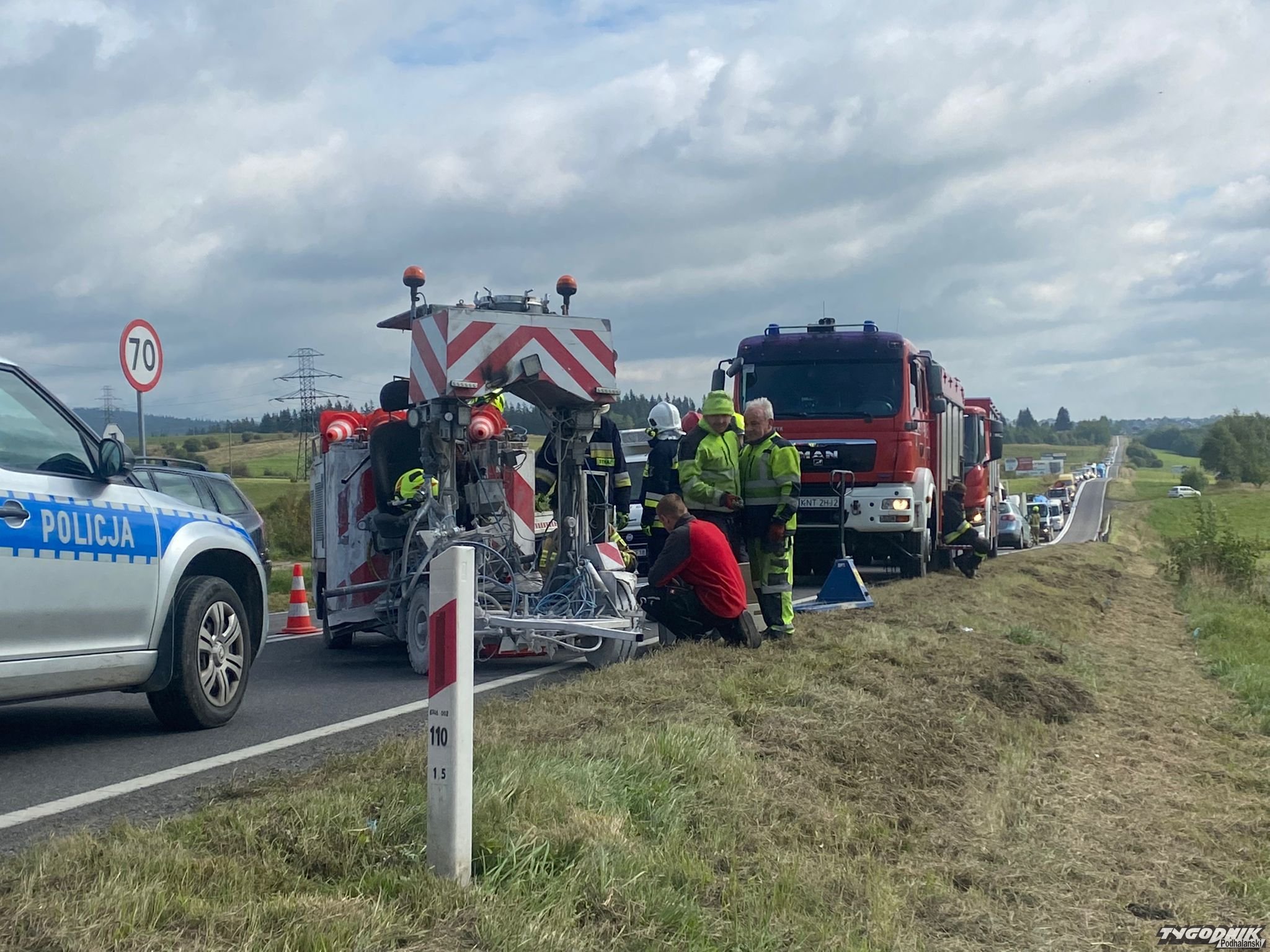 Wypadek zdarzył się po 10 na wyjedzie z Jabłonki w stronę Piekielnika. Osobowy volkswagen kierowany przez obywatela Słowacji uderzył w maszynę malującą pasy. Jedna osoba została poszkodowana i trafiła do szpitala. Z uszkodzonej maszyny wyciekła farba, którą neutralizują strażacy. Ruch w miejscu wypadku odbywa się wahadłowo. Tworzą się korki.