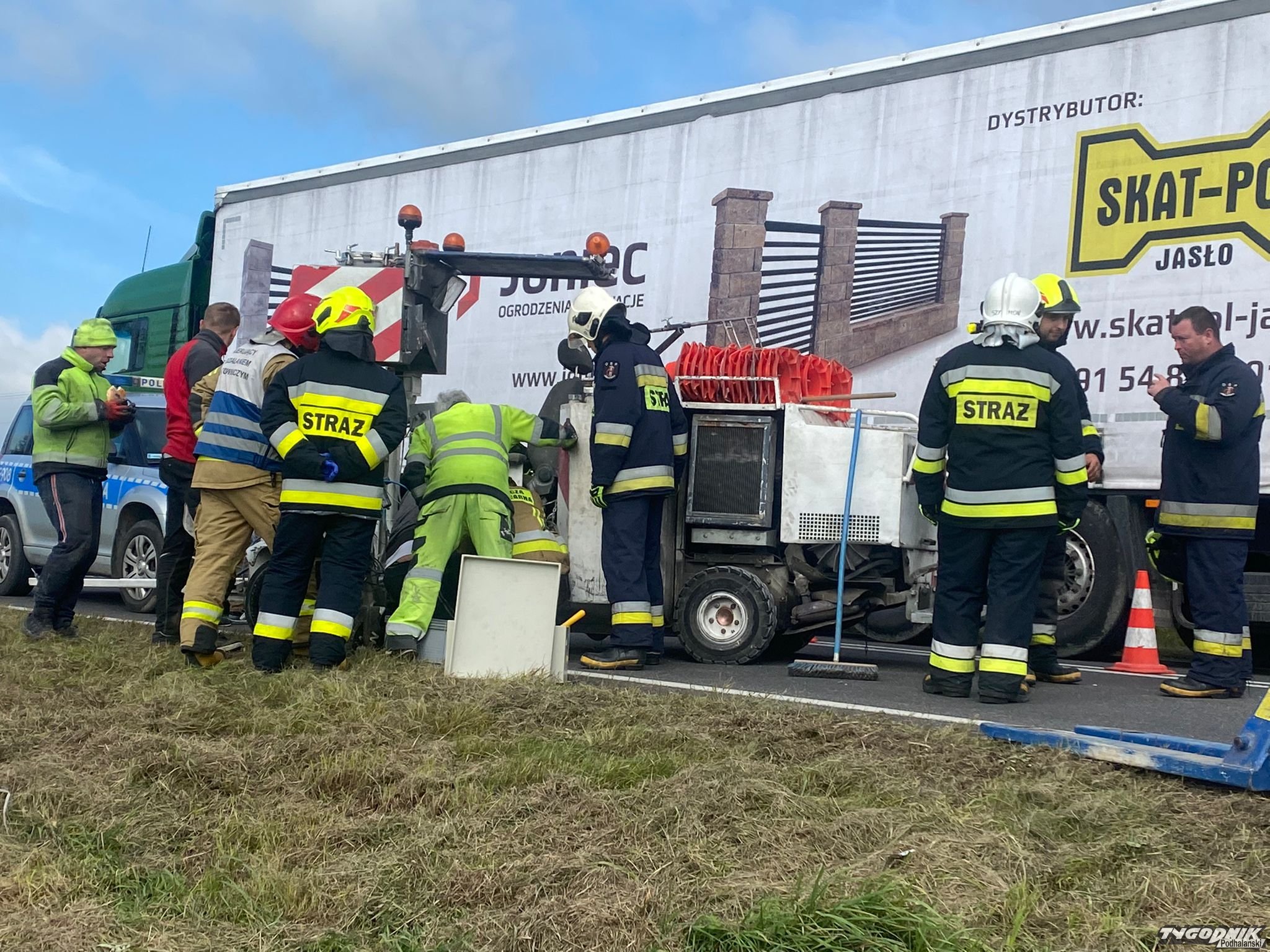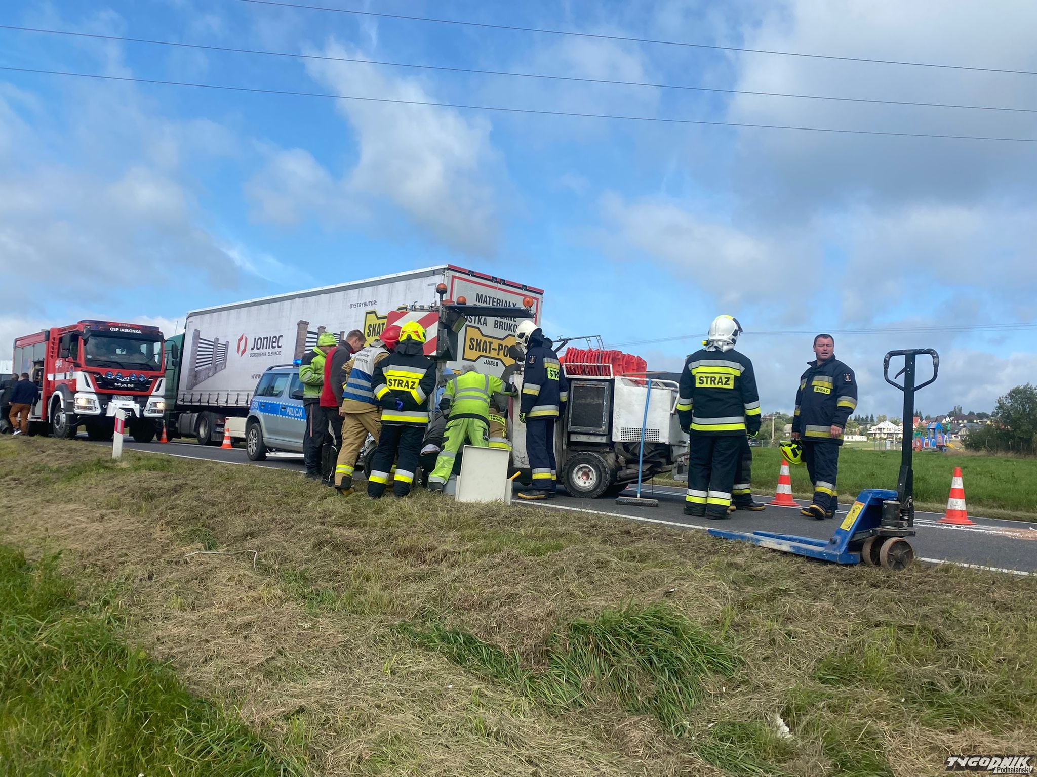 Zderzenie auta osobowego z maszyną drogową w Jabłone